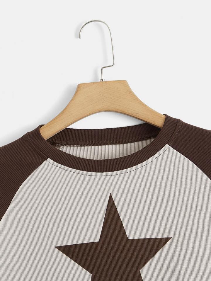 Grunge Punk تي شيرت بطباعة قمر اكمام راجلان