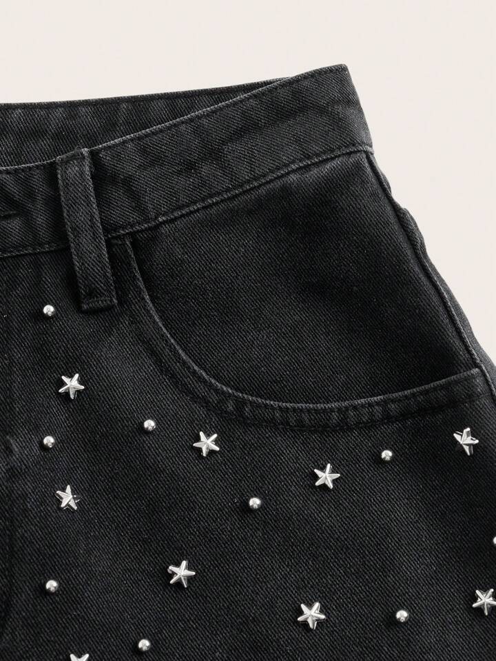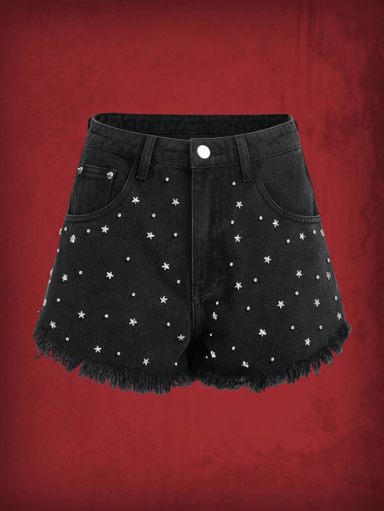 Grunge Punk شورت دنيم نجمة مرصعة حافة خام