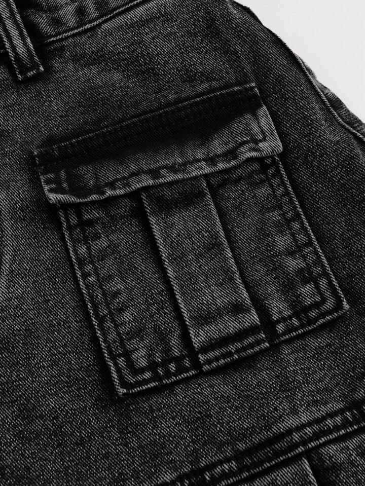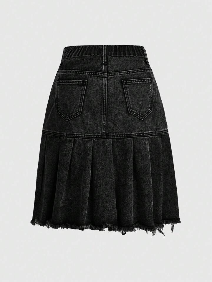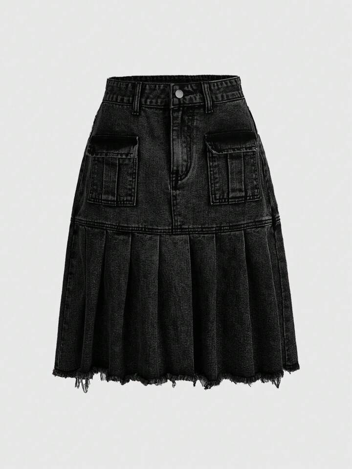 Grunge Punk تنورة جينز فينتج مرقعة الجيوب منتهي الغسيل مطوية مناسبة لمقاس كبير، طراز بنكي شارع لفصل الصيف