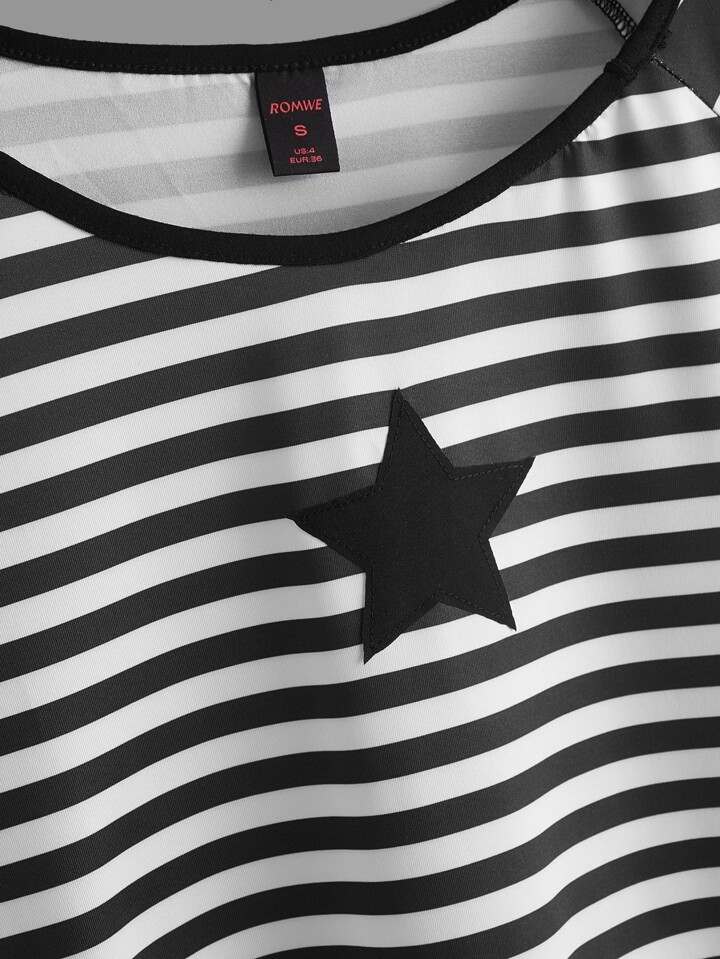 Grunge Punk تي شيرت بطباعة مخطط ونجمة اكمام راجلان