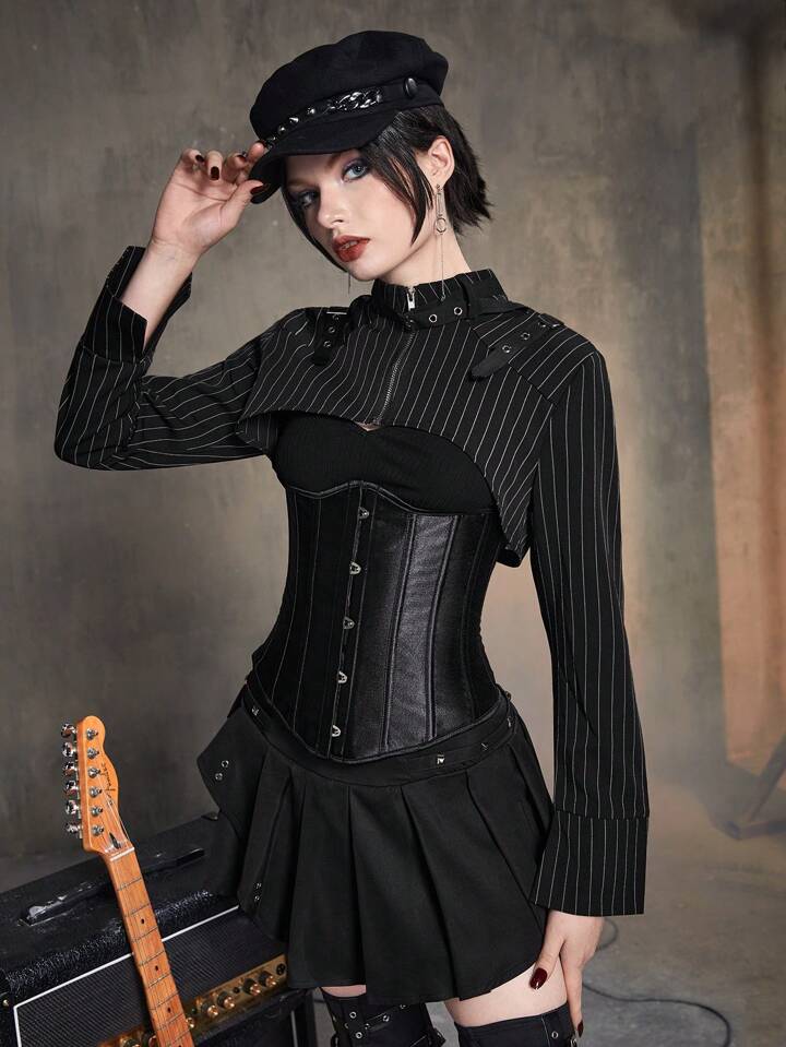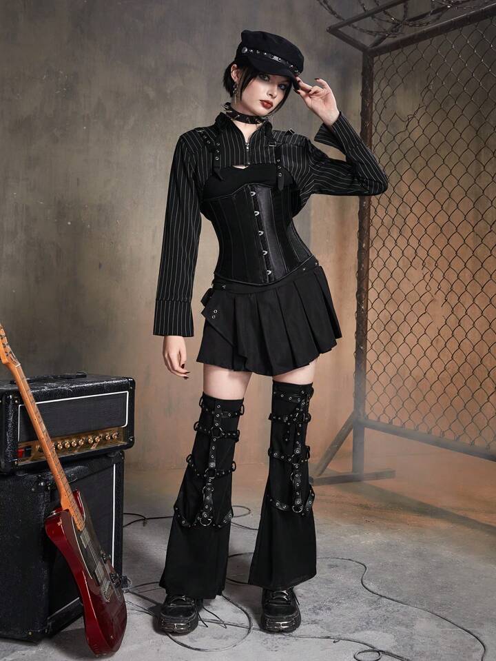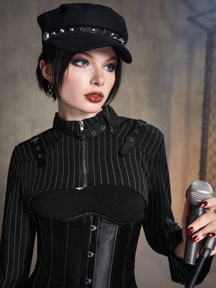 Grunge Punk لباس علوي قصير للغاية مخطط بدون صدرية كامي