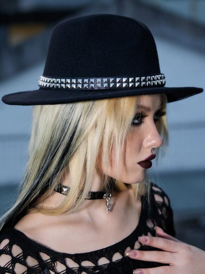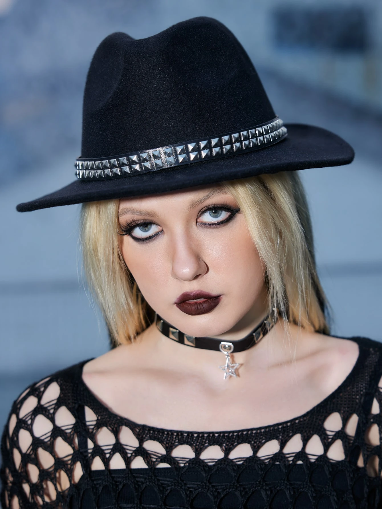 Grunge Punk قبعة فيدورا بديكور مرصع