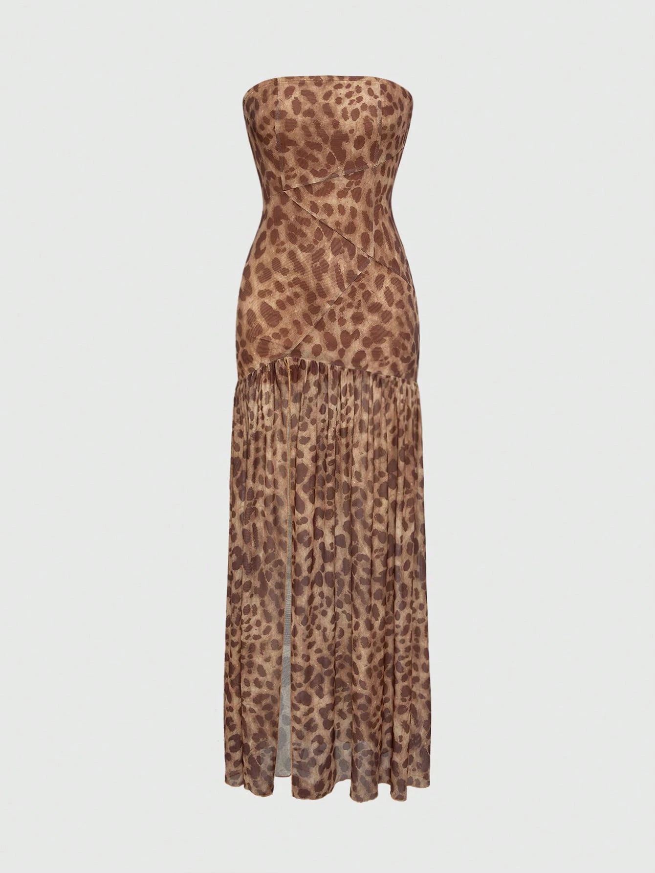 Grunge Punk فستان ماكسي طويل بتصميم أمامي مفتوق بطبعة نمر للنساء، فستان بطبعة فهد