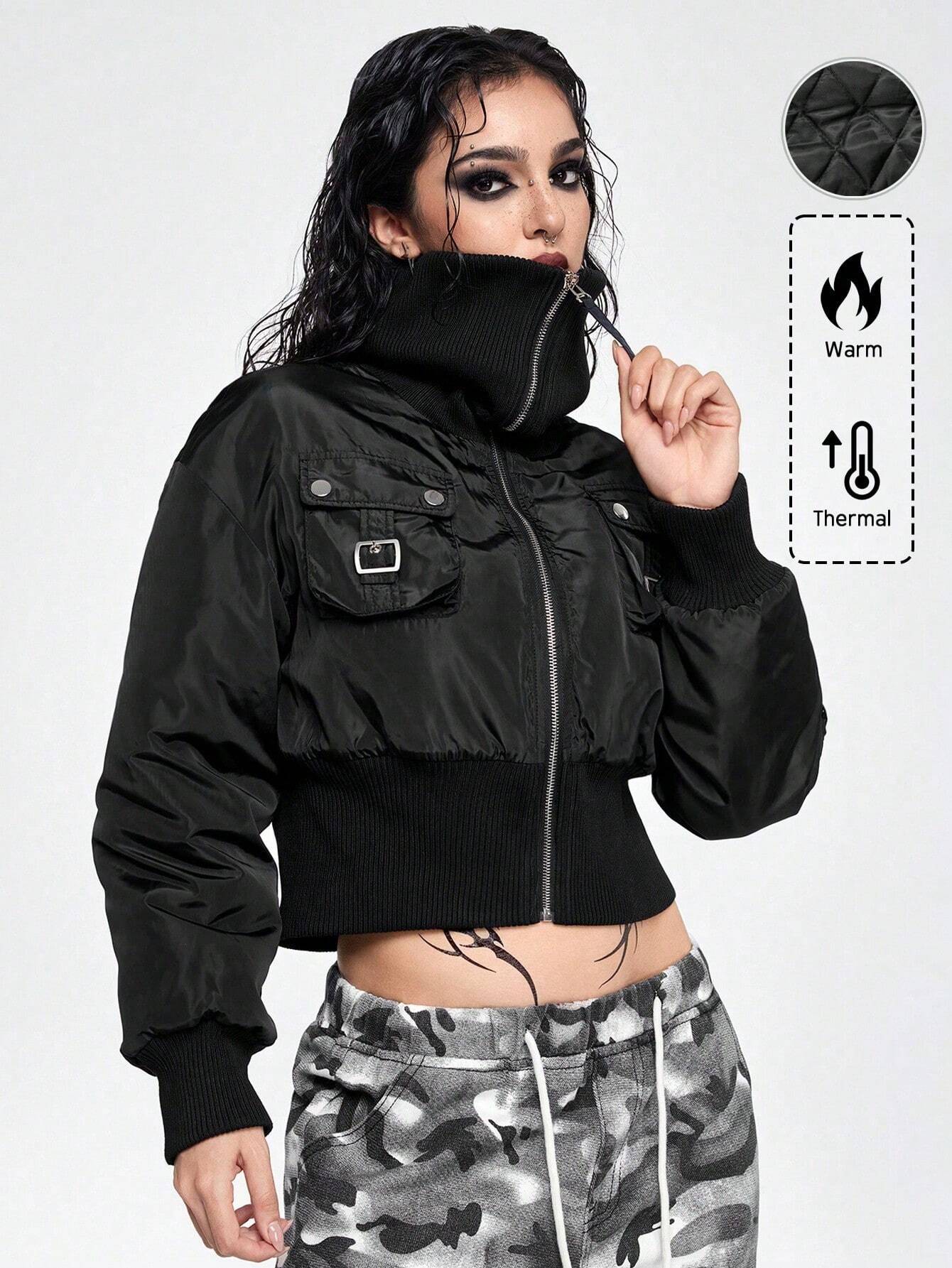 Grunge Punk معطف نسائي للشتاء/الخريف ذو قطع معدنية ديكورية، أنيق بفصالة ضيقة مناسبة للشارع والموتوسيكل ويؤكد الخصر الرفيع ، بيئة كاجوال
