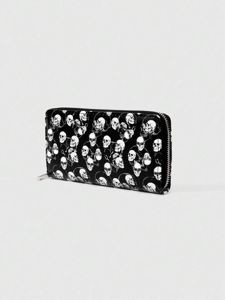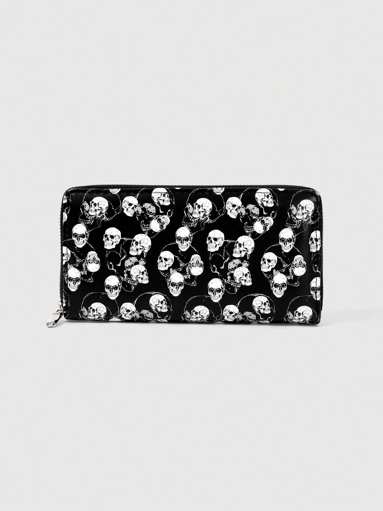 Grunge Punk محفظة طويلة ذات قاع أسود بشكل جمجمة الاتجاه