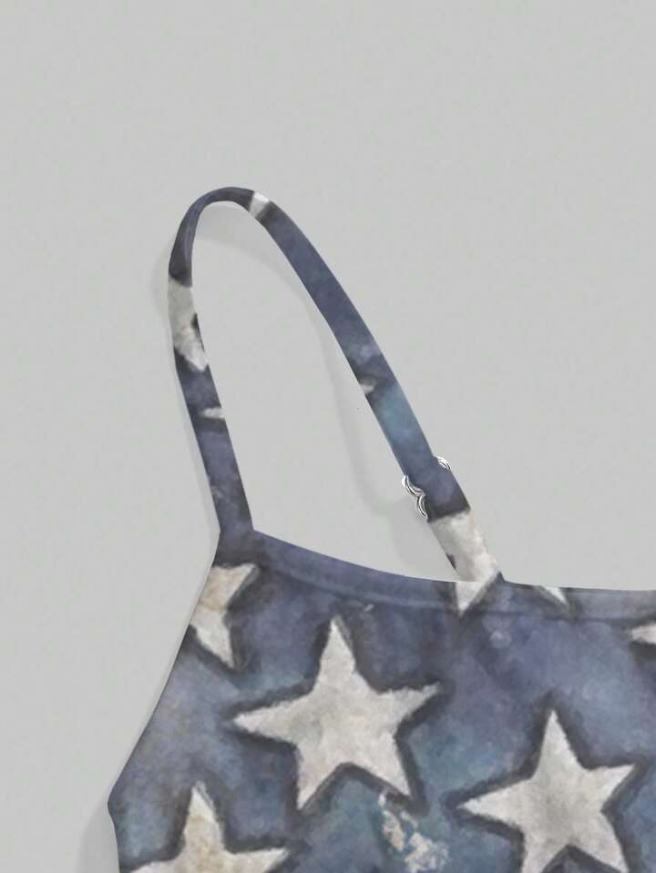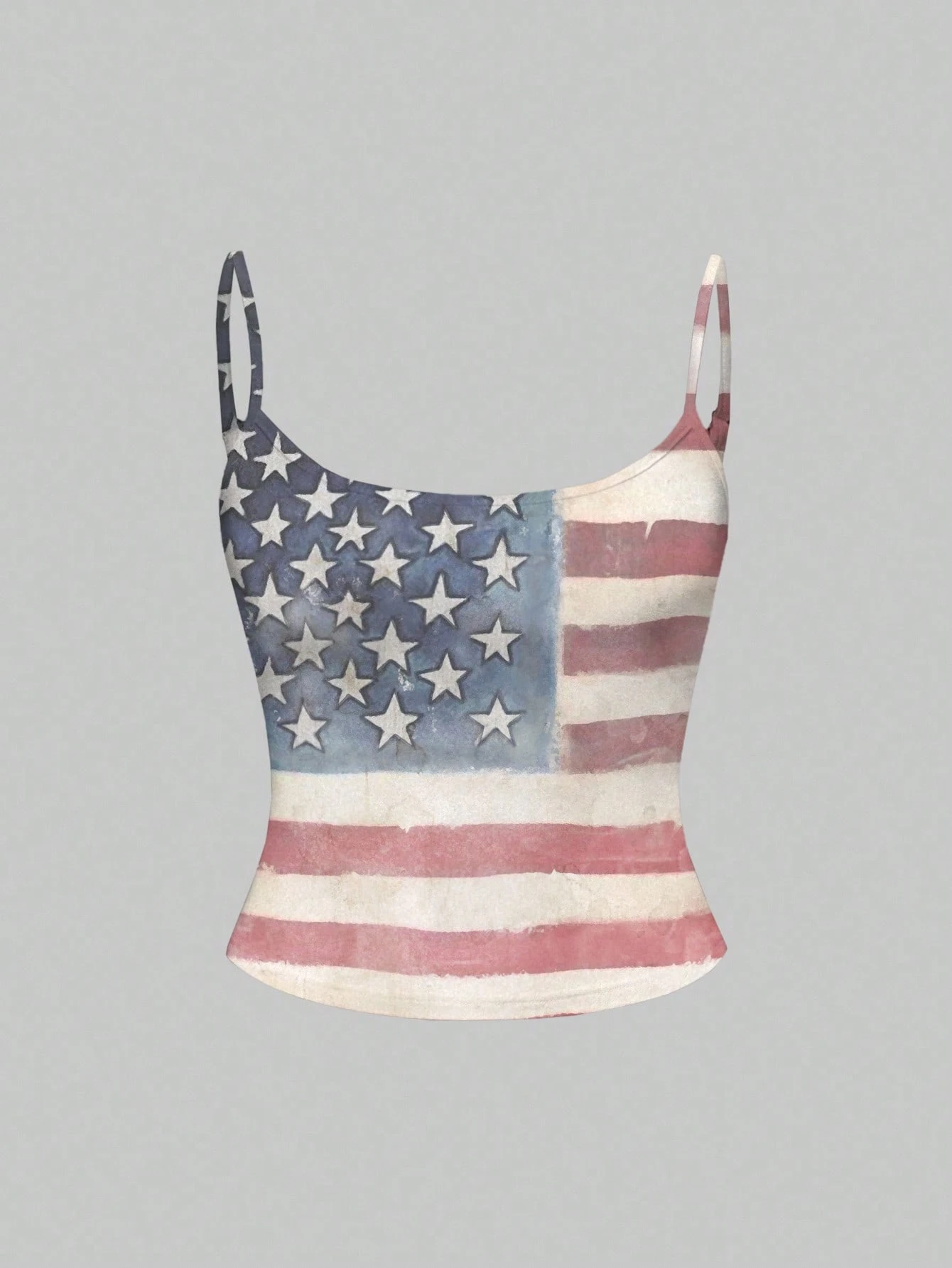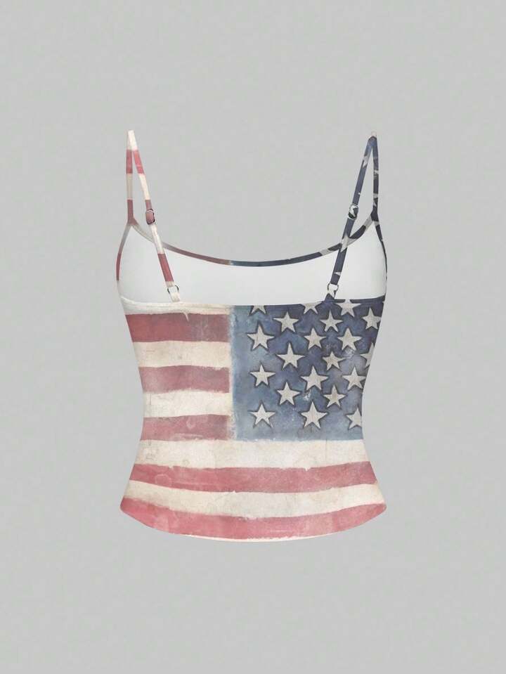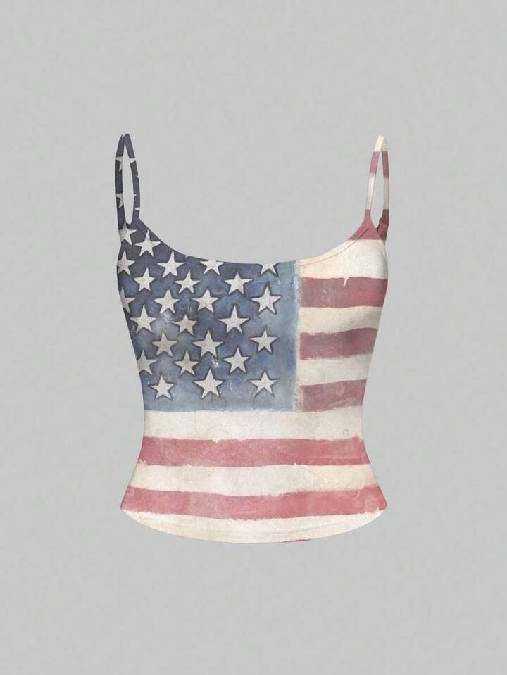 Grunge Punk ملابس علوية بدون أكمام مطبوع بعلم الولايات المتحدة الأمريكية للنساء، يوم الاستقلال