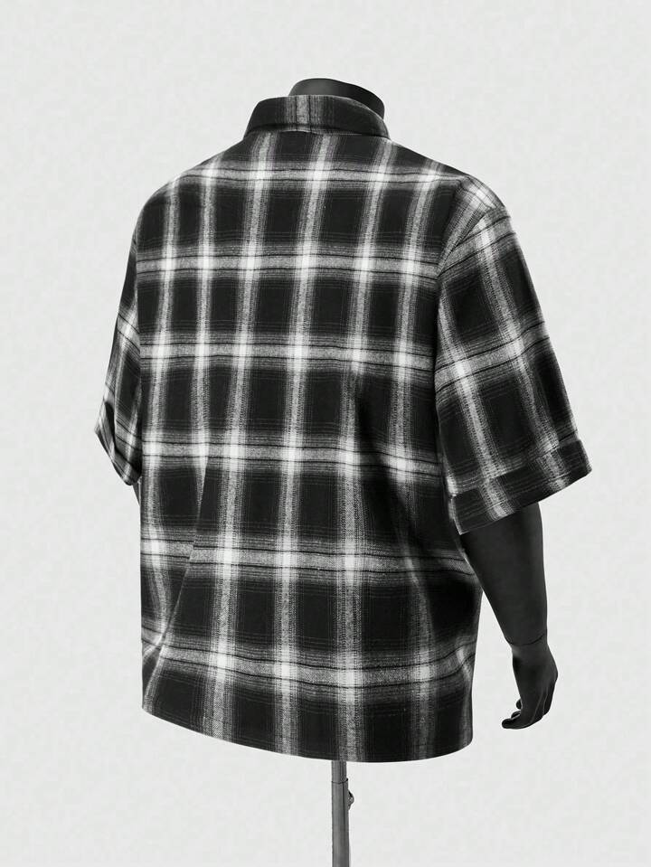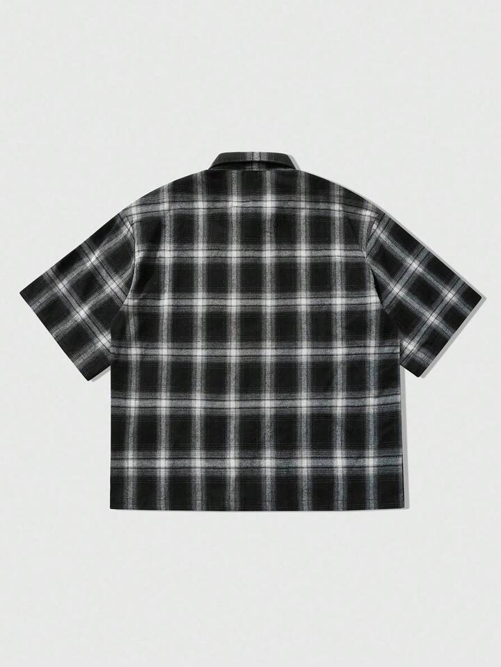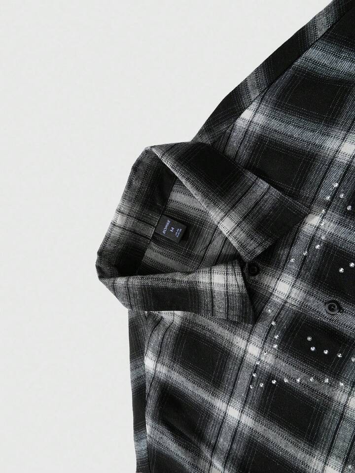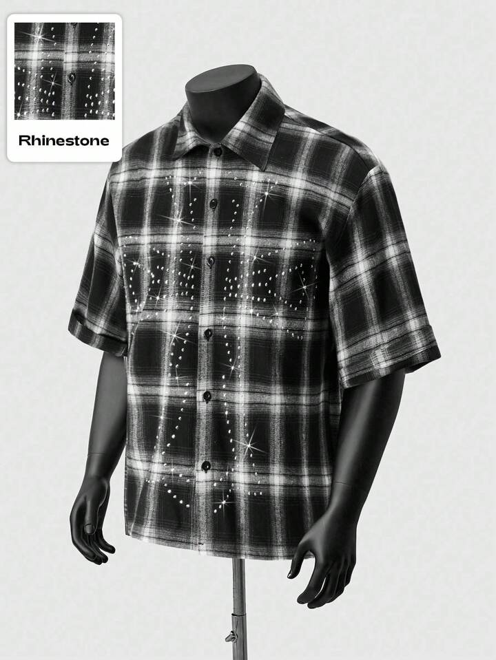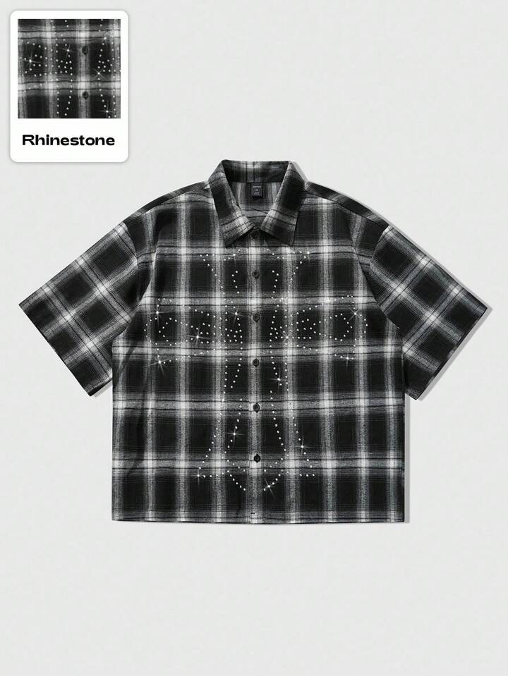 Grunge Punk قميص أكمام قصيرة مخطط بتأثير الراين ، تصميم عصري