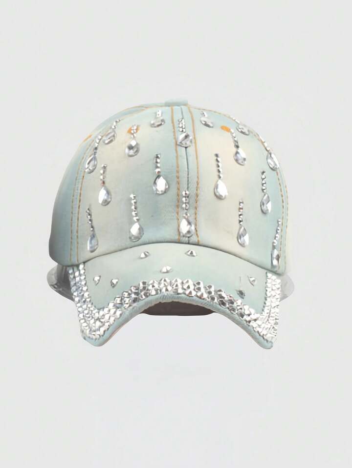 Grunge Punk قبعة بيسبول بحافة منحنية مزينة بالروز ماني على شكل قطرات المياه بطرز عتيق