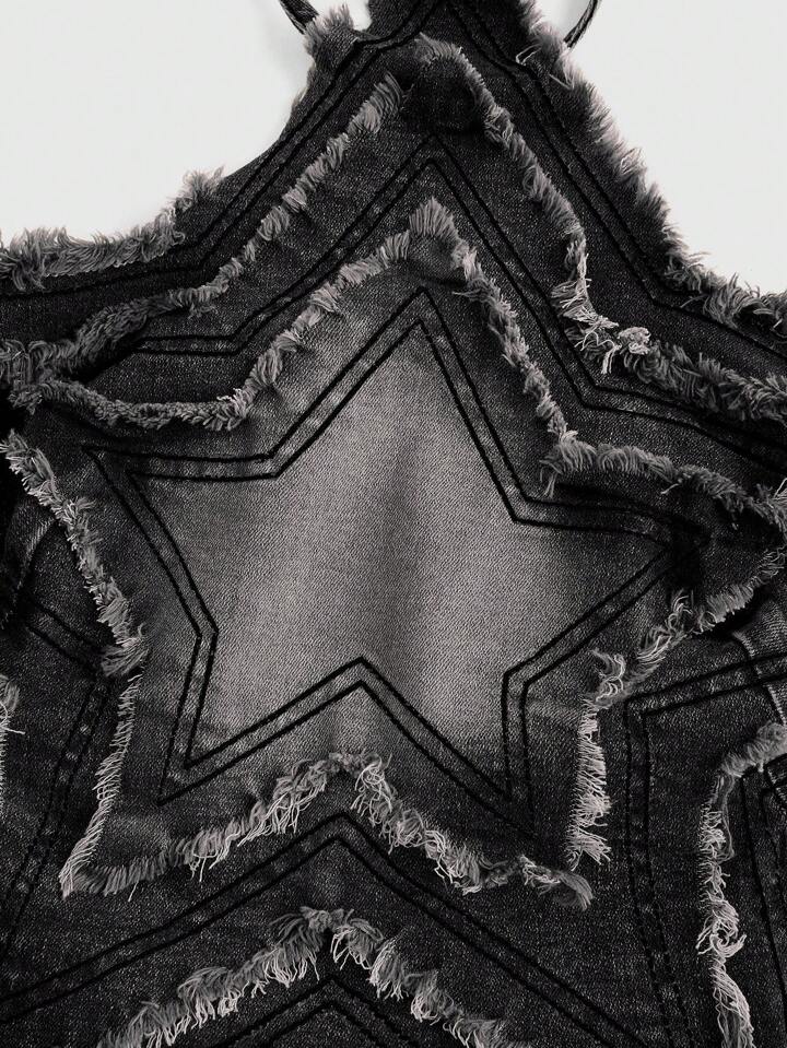 Grunge Punk جاكيت جينز مرقعة بنجمة للمغامرات الخارجية بطراز البنك المهتر المغسول قديم الطراز