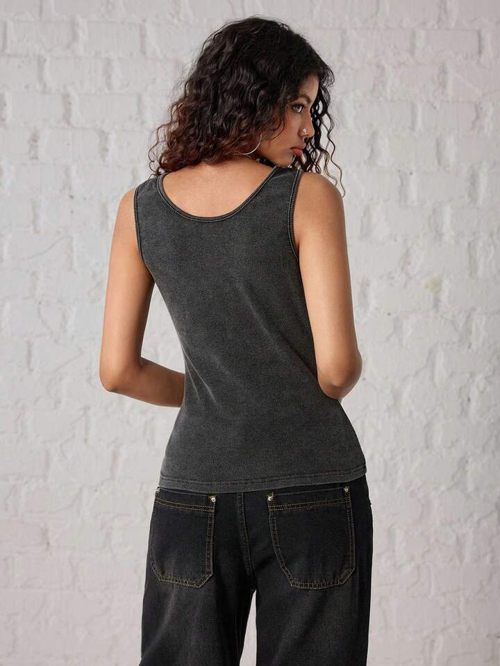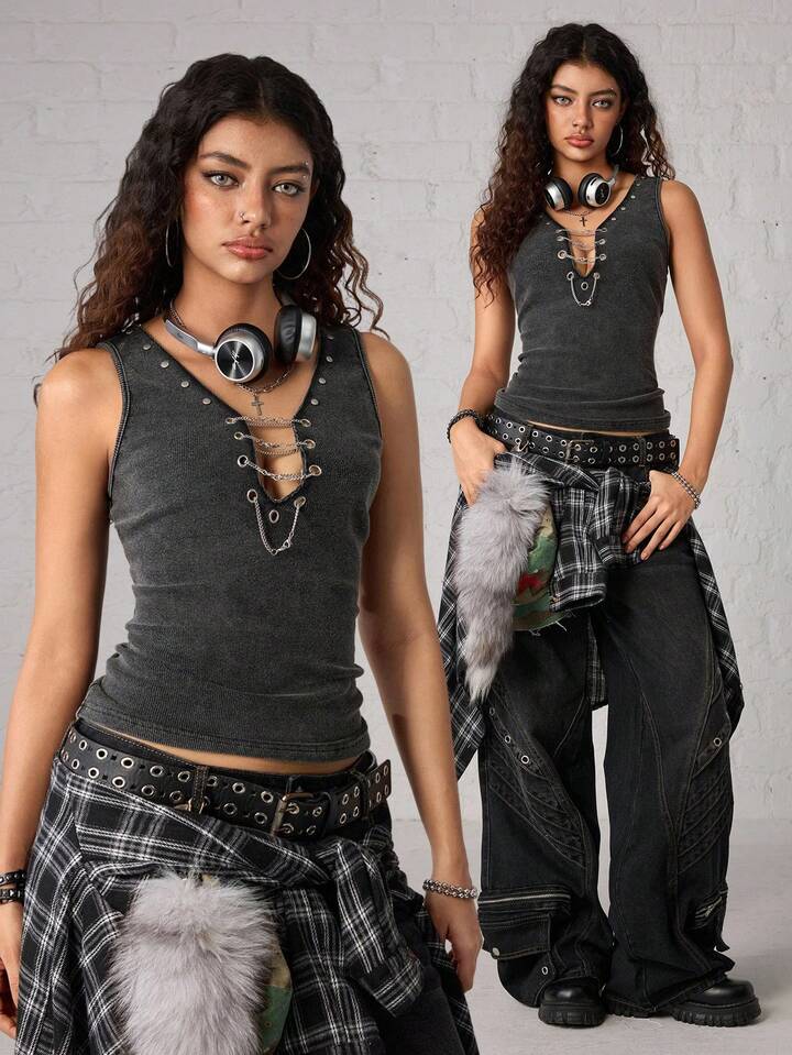 Grunge Punk لباس علوي تانك شارع بالحزام السلسلة وثقب العين المتعب النساء العتيق