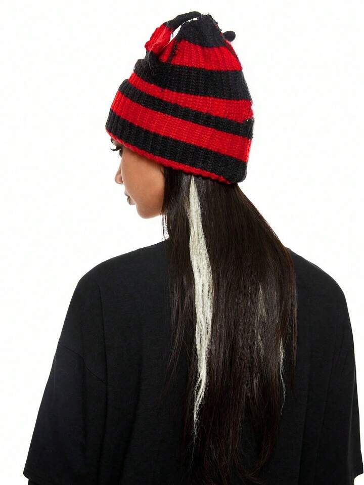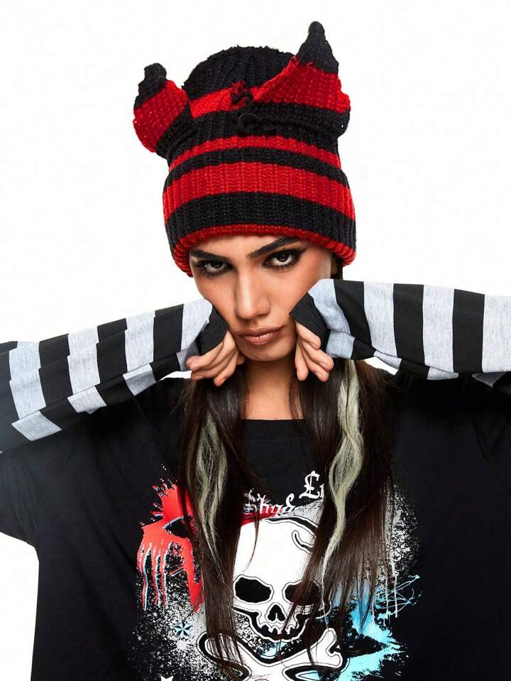 Grunge Punk 1 قطعة قبعة أكسسوار للأذن من القماش المنسوج بنمط فريد وقبعة حزب، مناسبة للخريف/الشتاء، كاجوال ولارتداء إلى المدرسة، تصميم متباين باللونين الأحمر والأسود ذو طراز كيوت وشارع وأساسي طراز Y2K