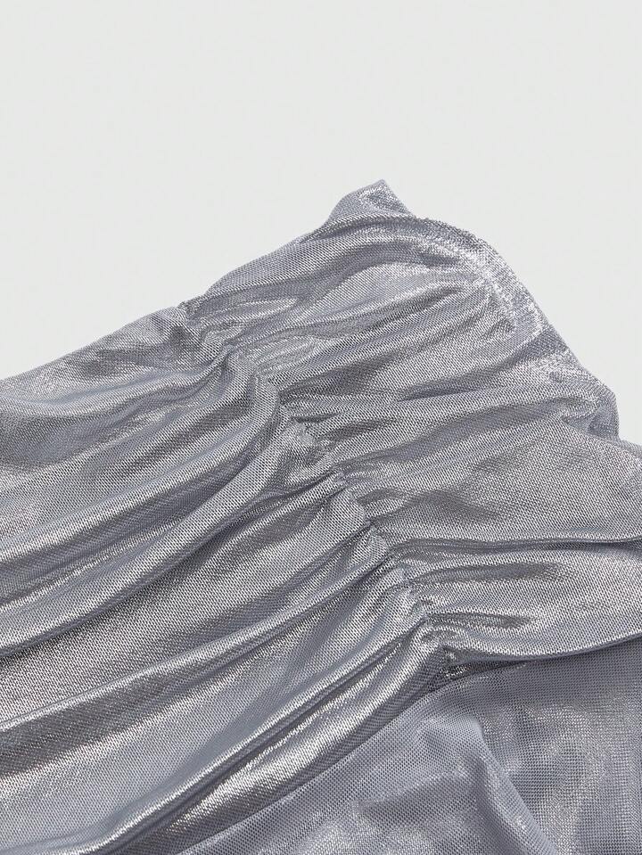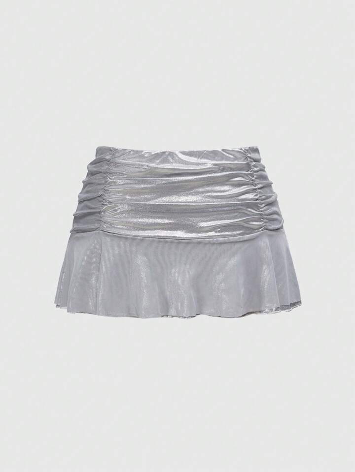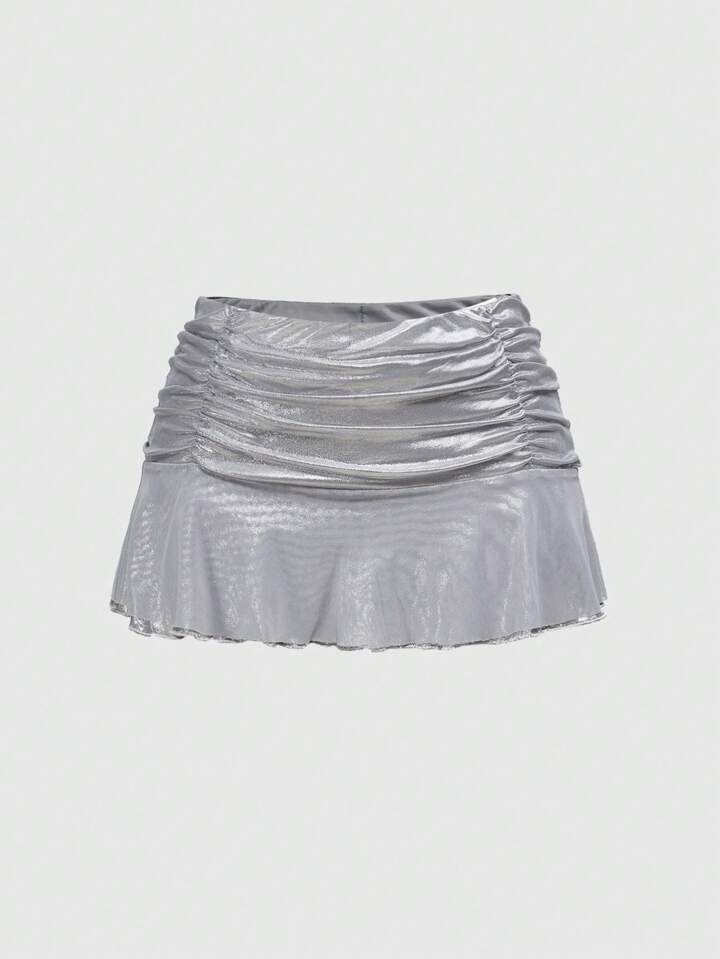 Grunge Punk تنورة قصيرة مطوية لامعة فضية للنساء من طراز Y2K، تصميم خصر منخفض جريء وعتيق، مناسبة للحفلات والحفلات الموسيقية