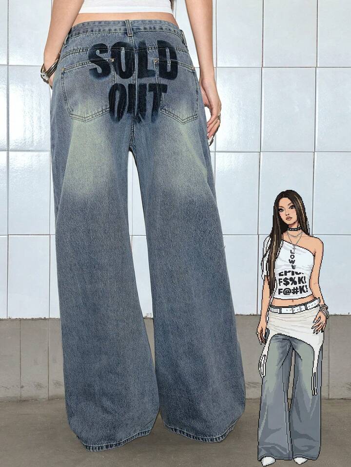 Grunge Punk سراويل جينز كاجوال مطبوعة للنساء