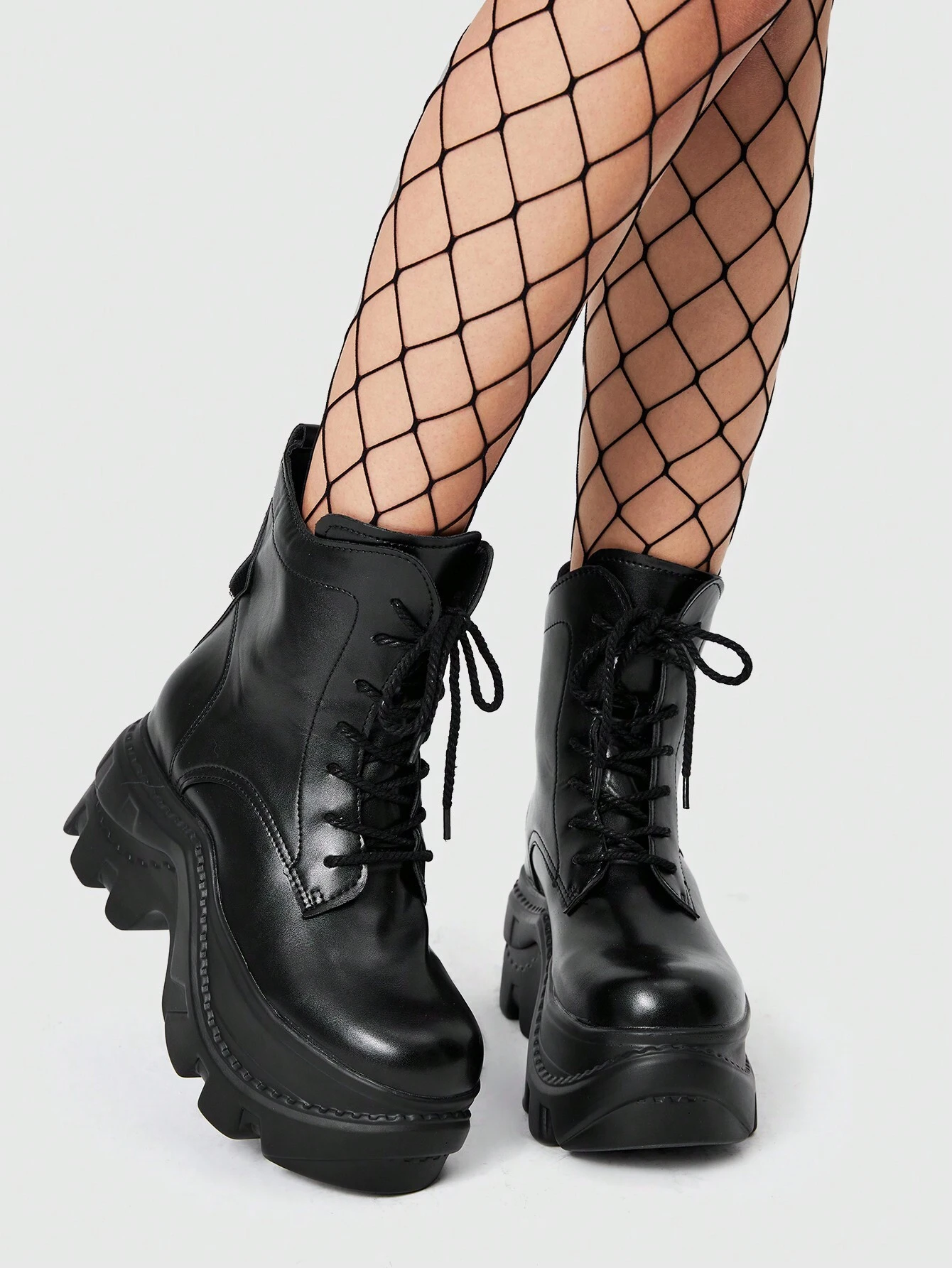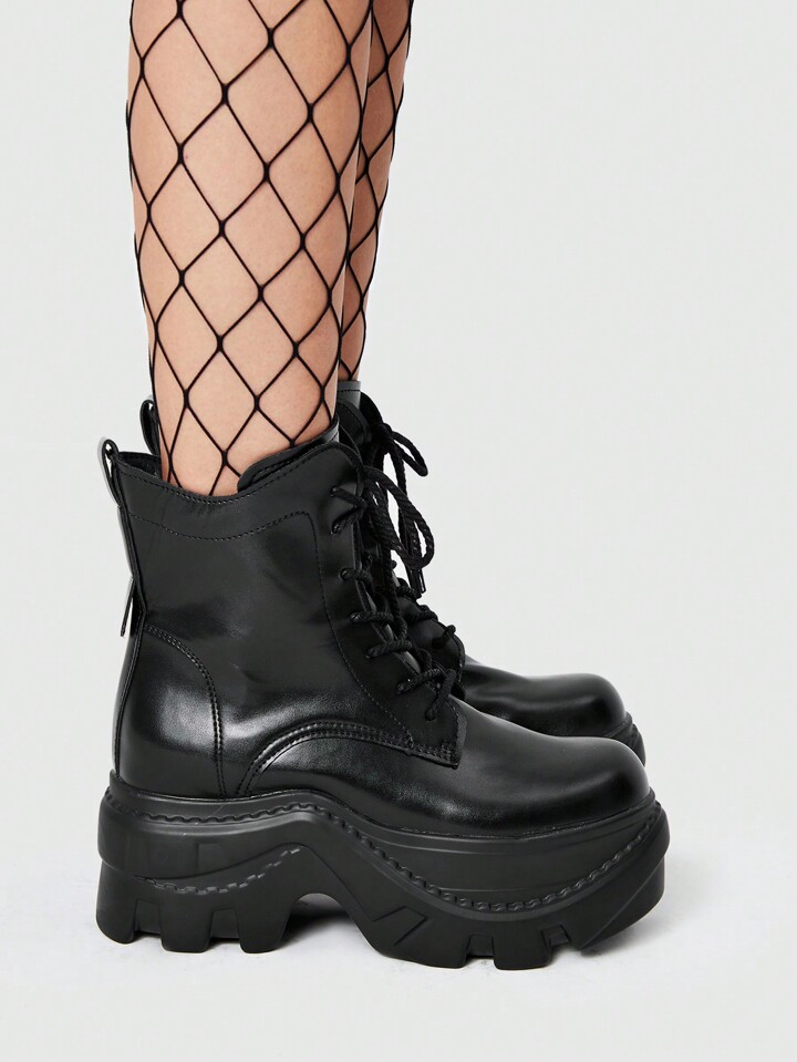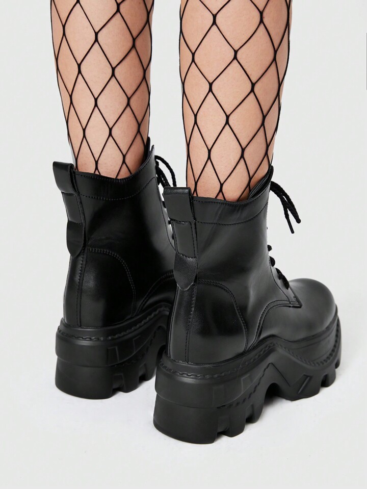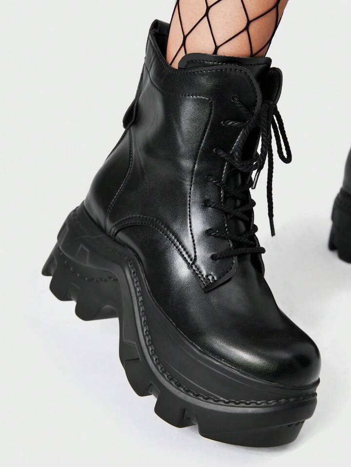 Grunge Punk بوت الكاحل ذات الكعب السميك للنساء بسحاب خلفي للاستخدام اليومي والشارع والمدرسة، بطراز بنكي للكريسماس ورأس السنة والخريف والشتاء، باللون الأسود