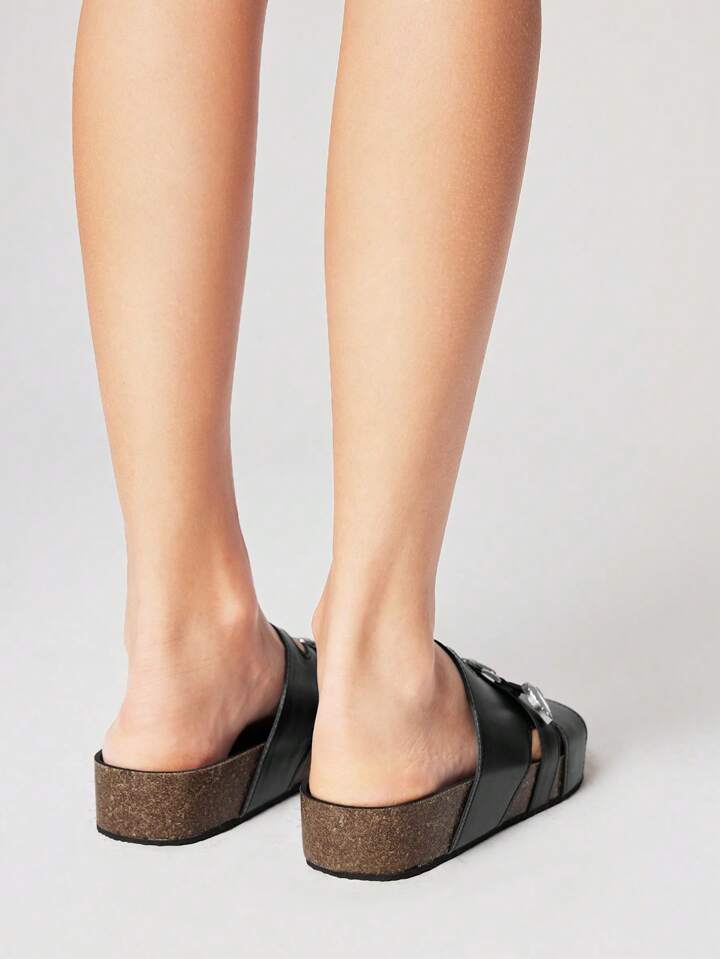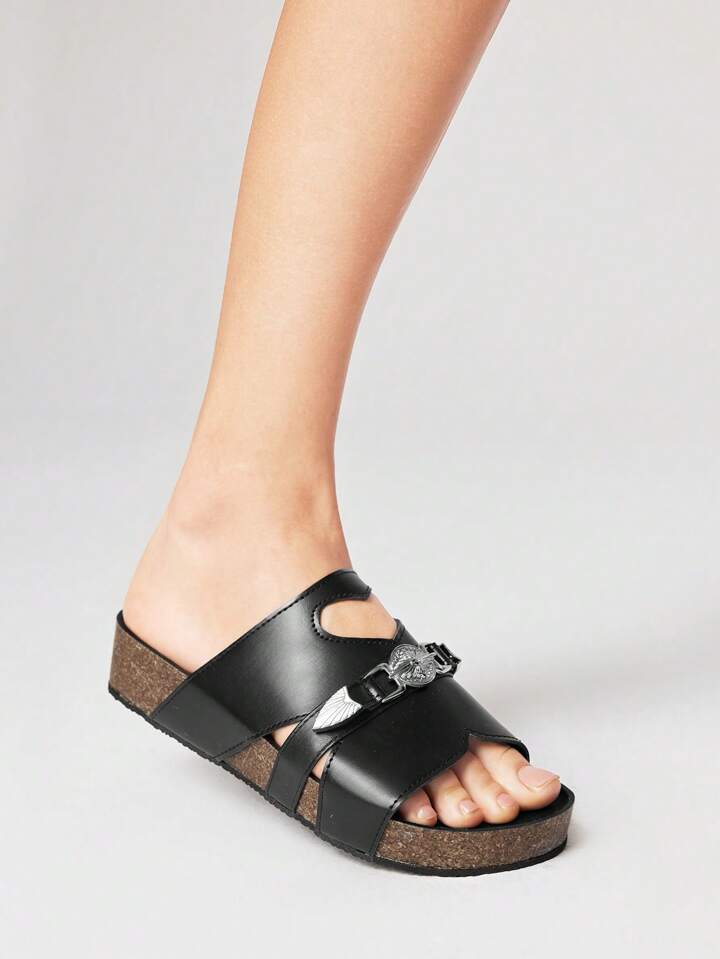 Grunge Punk صنادل نسائية بطراز روك داكن، بانك، جوث، صنادل صيفية مفتوحة الأصبع بحزام مزين بالزنابير، صنادل شاطئية مسطحة، صنادل للهالوين