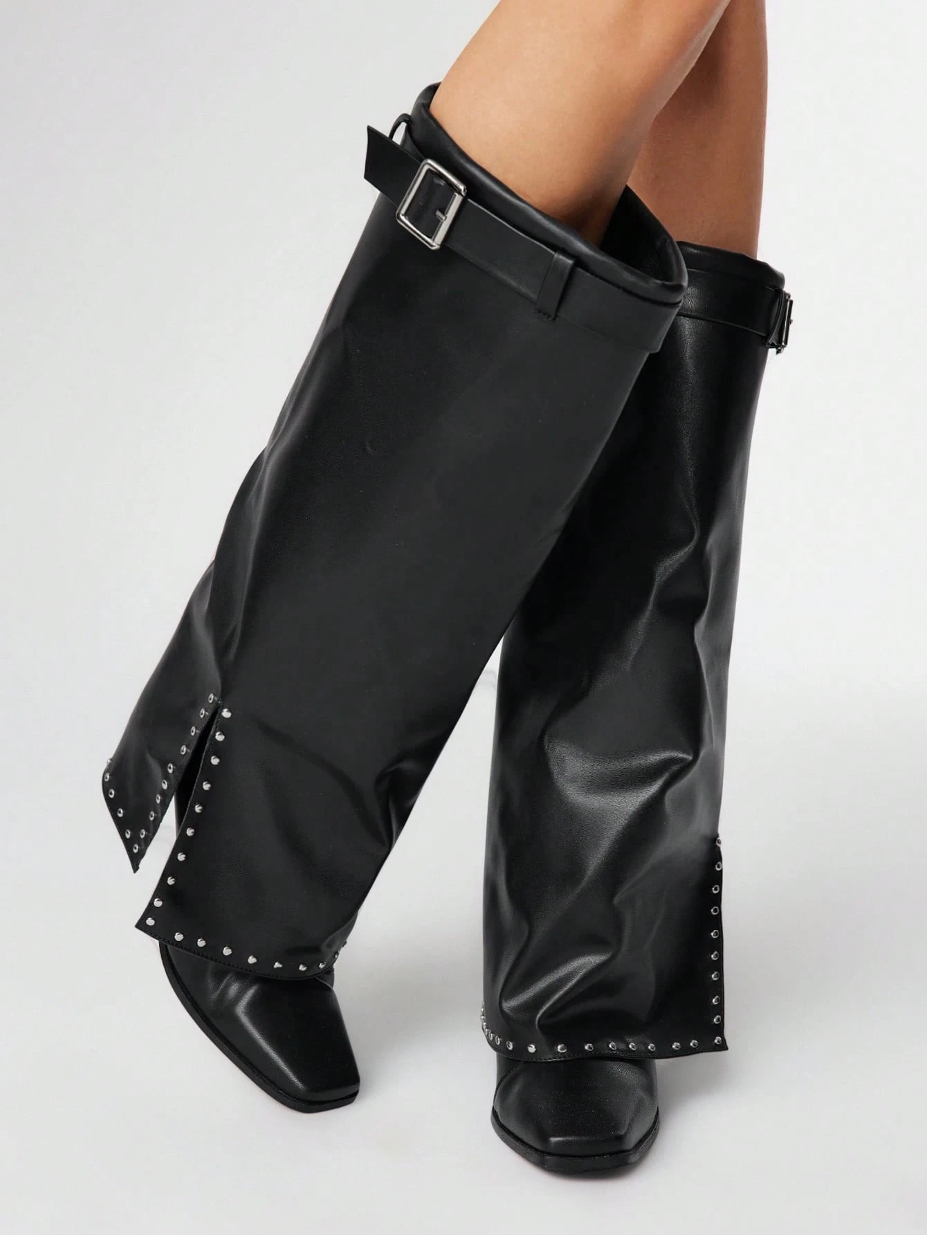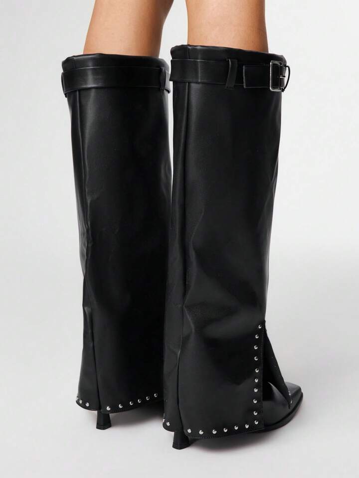 Grunge Punk بوت كاحل نسائية بكعب سميك للتنقل، قابلة للتعديل بإبزيم