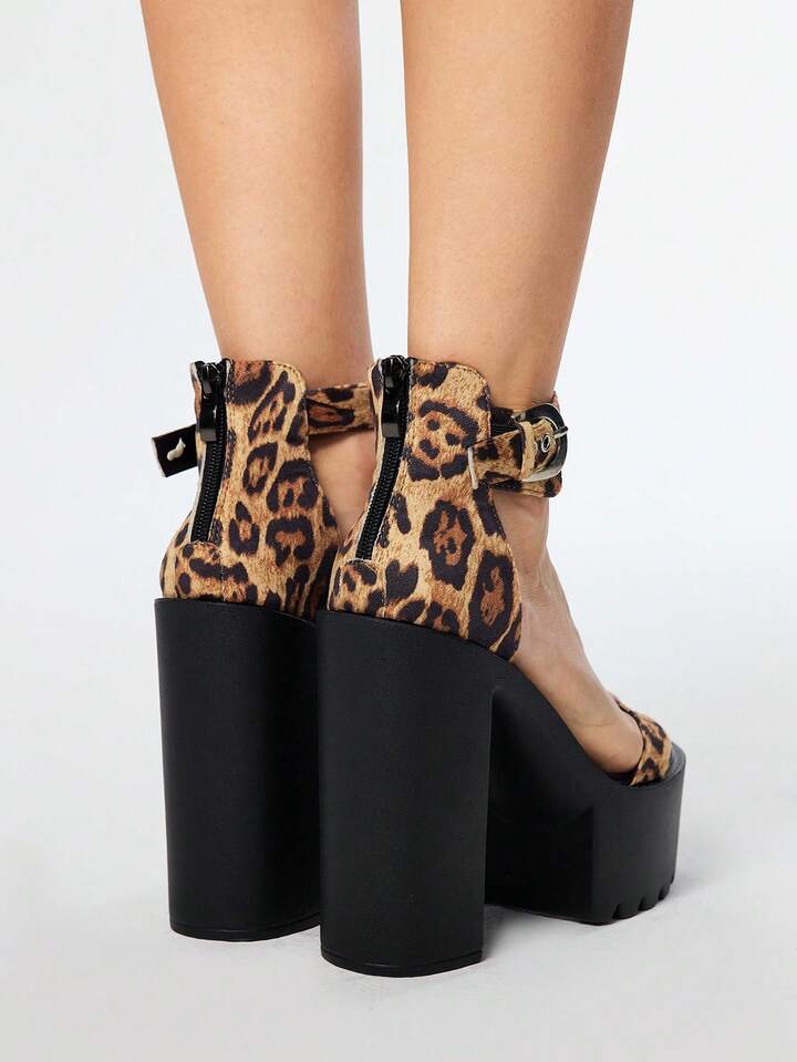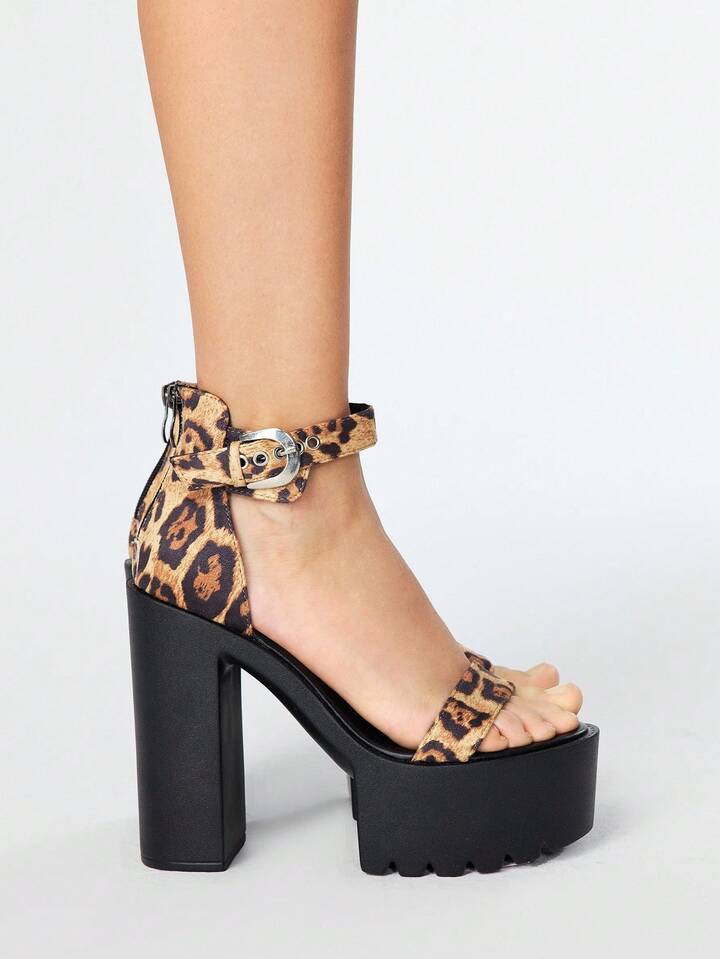 Grunge Punk صنادل نسائية بحزام بطبعة نمر، صيفية بطراز جوثي بانك معدني مفتوحة الأصبع، أنيقة للهالوين