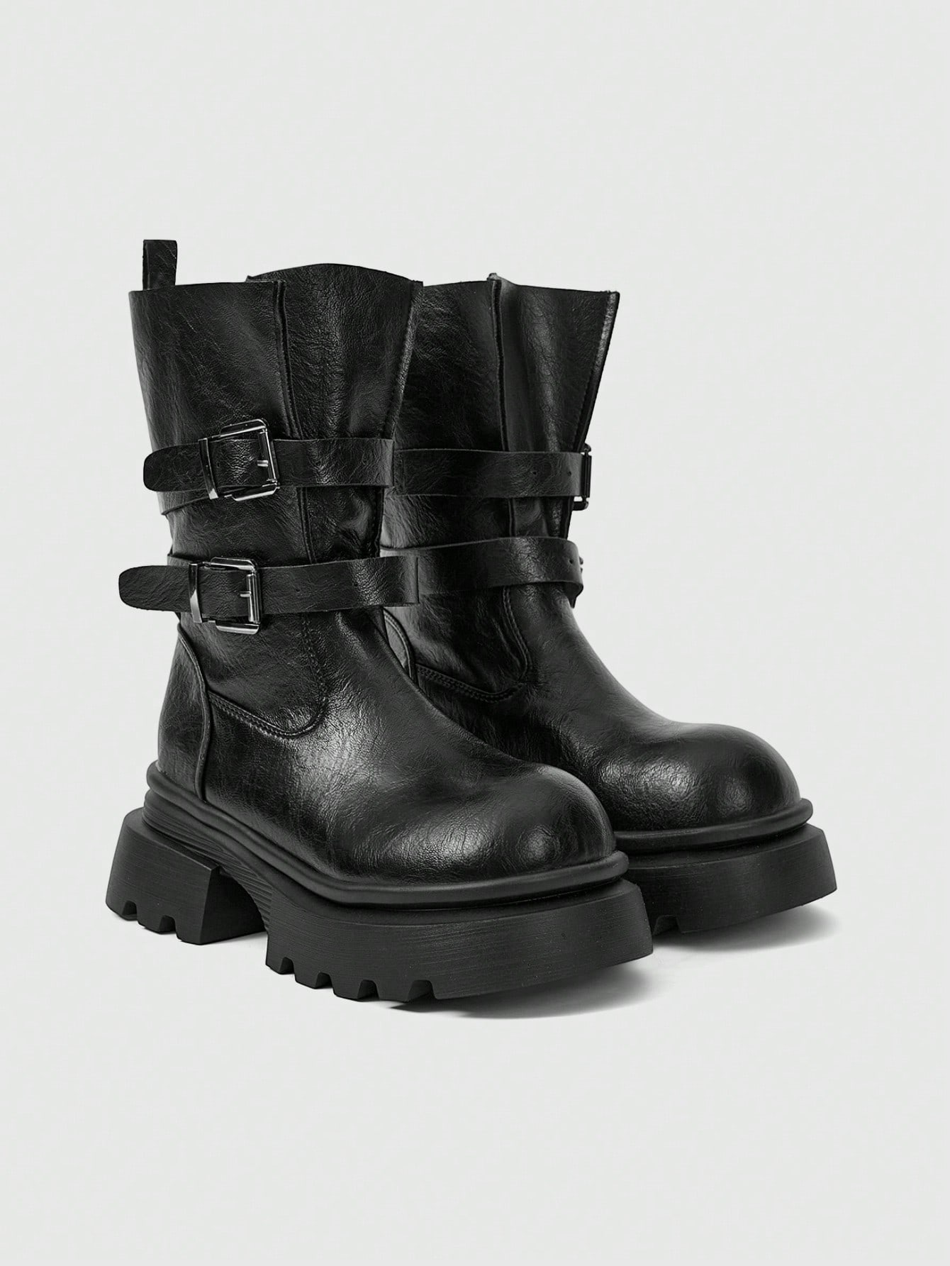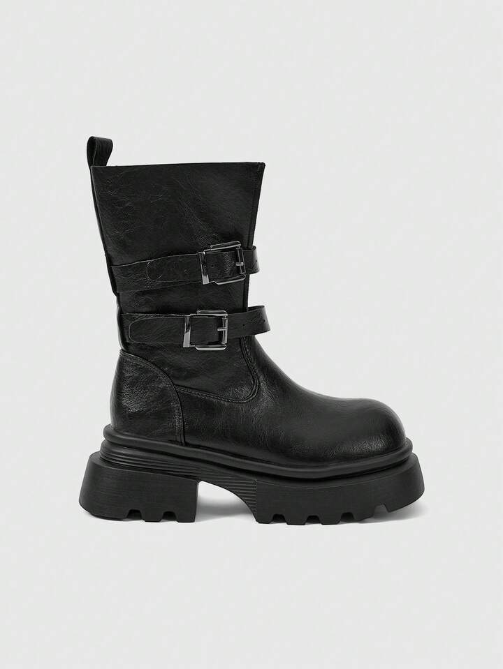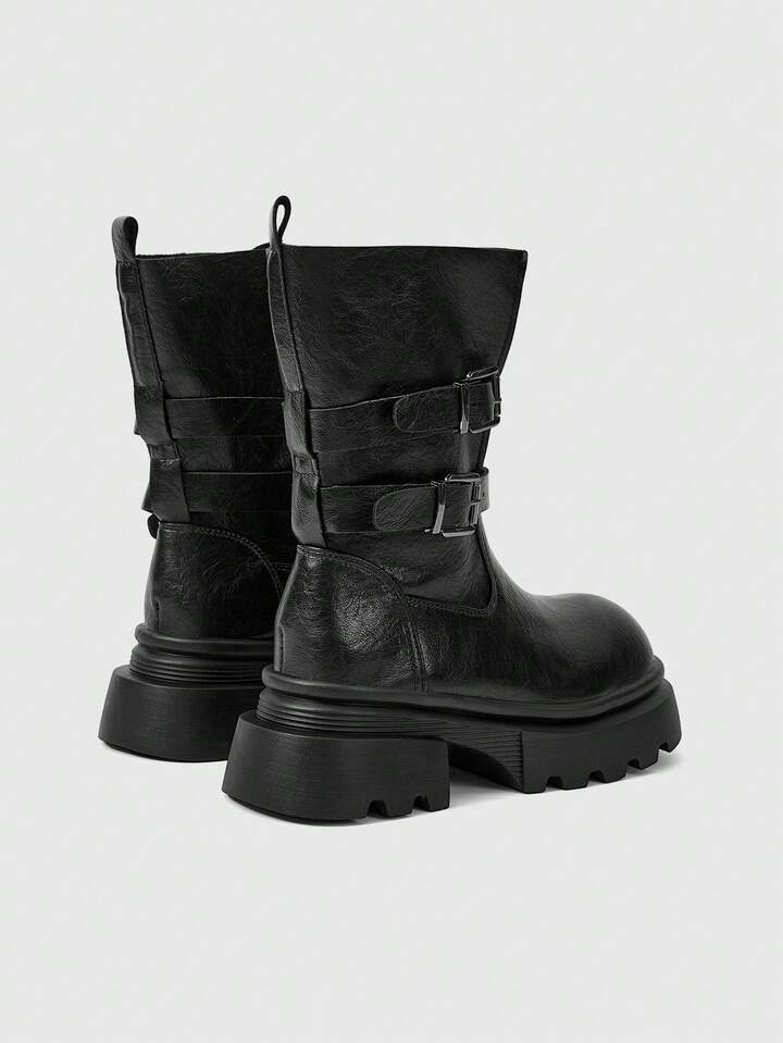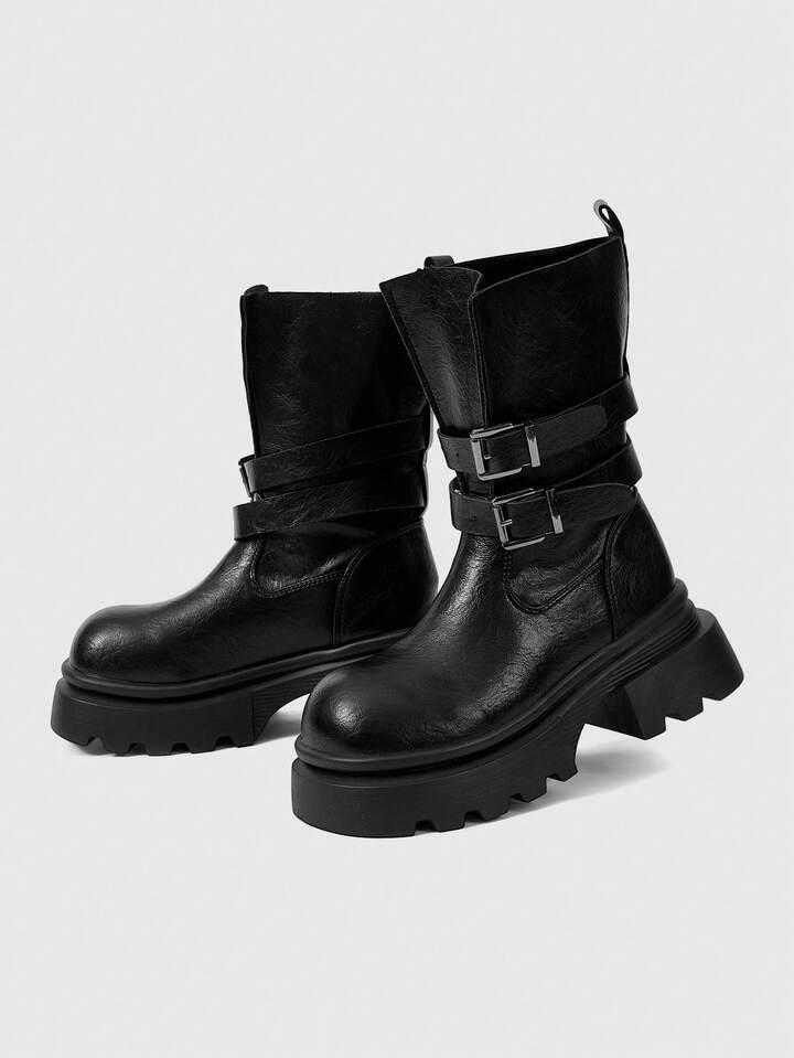 Grunge Punk بوت نسائية عصرية متعددة الاستخدامات ذات سُمك في الأربطة والنعل الوسطي للركبة