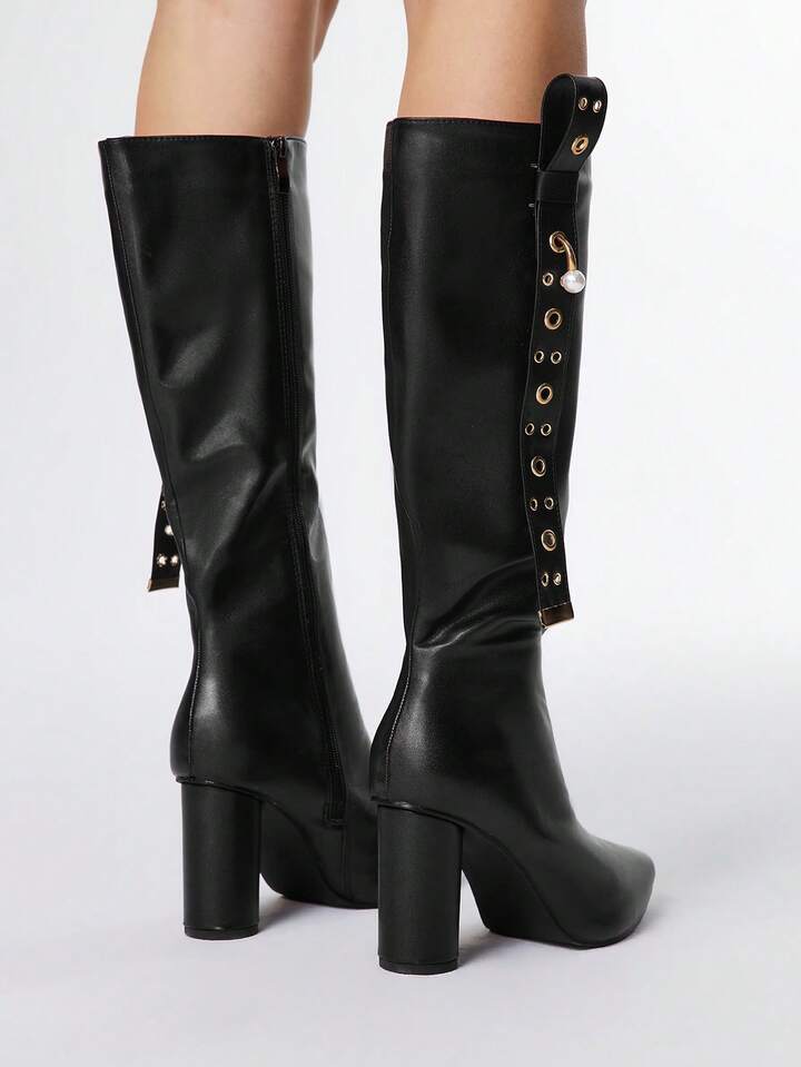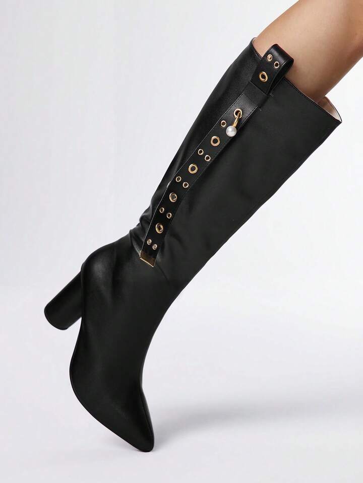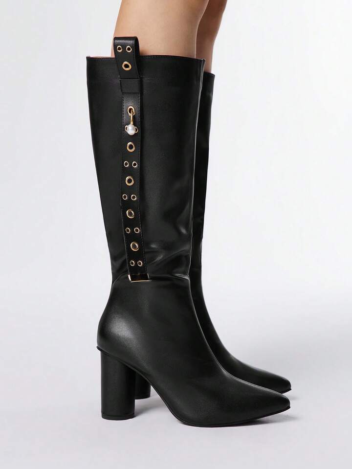 Grunge Punk بوت نسائية ذات كعب عالي، أنيقة وعملية ذات أصبع قدم مدبب، من جلد البولي يوريثان مع كعب سميك، مناسبة للخريف والشتاء