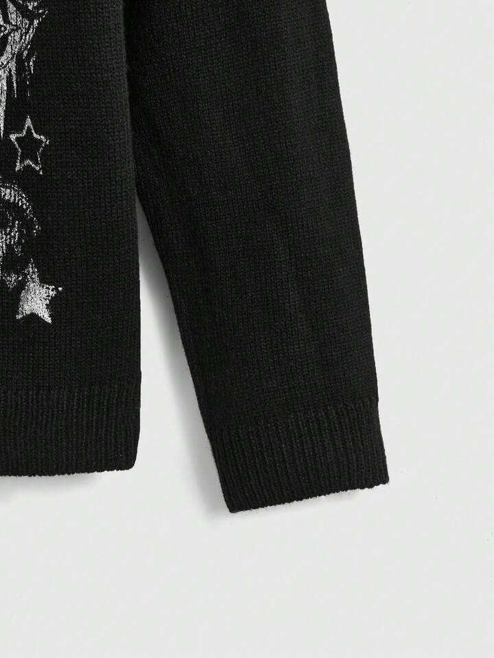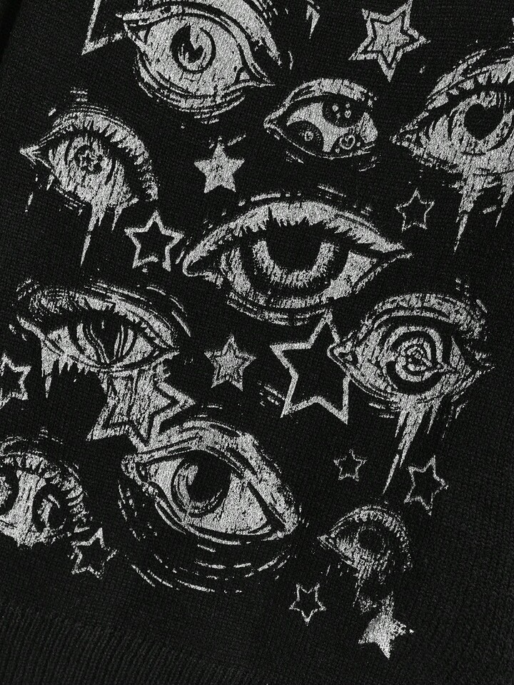 Grunge Punk كنزة صوفية متعددة الاستخدامات مطبوعة بعين بطراز بانك ذات كتف مائل للنساء
