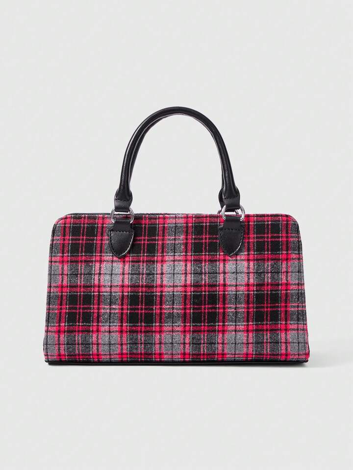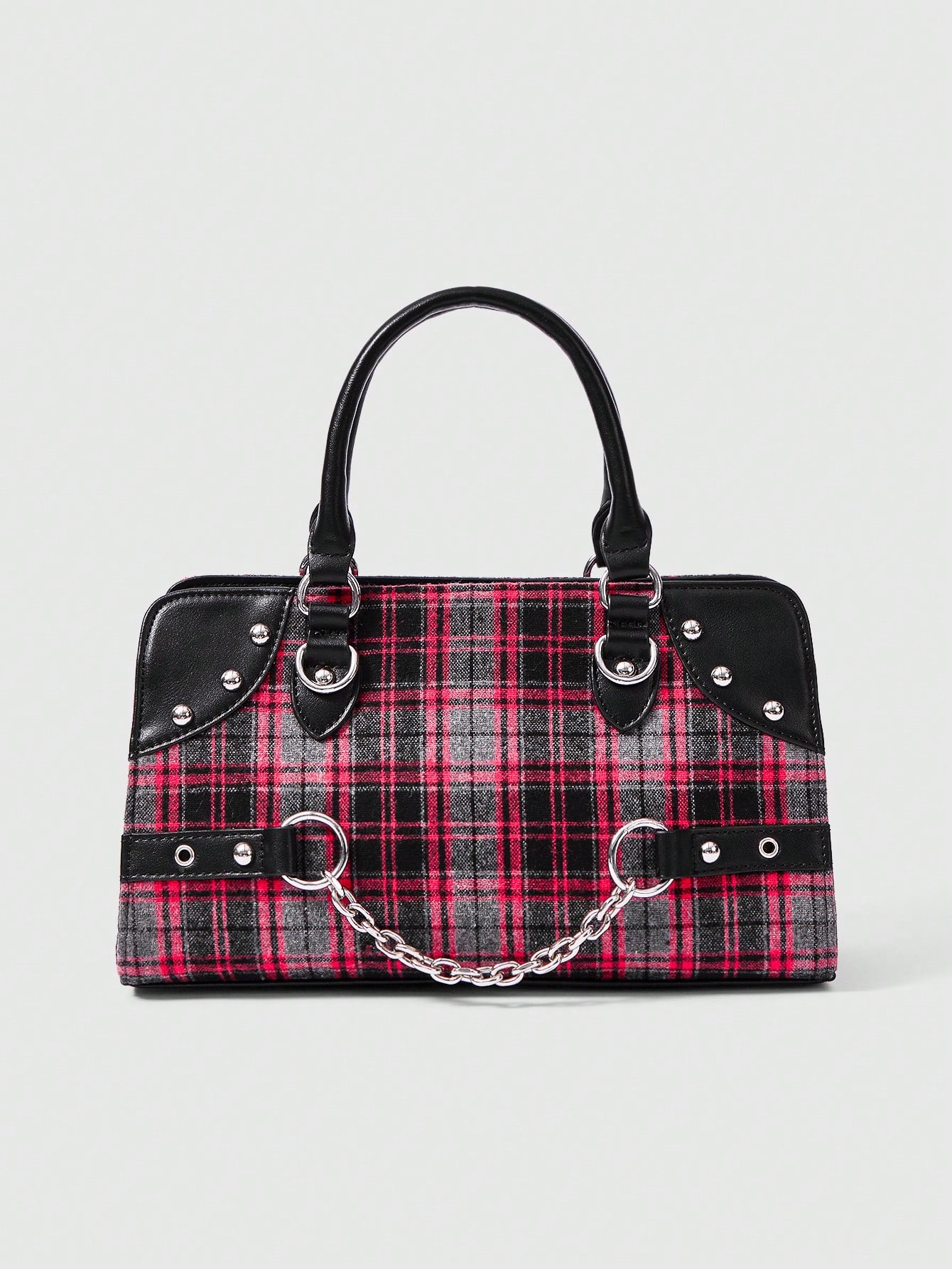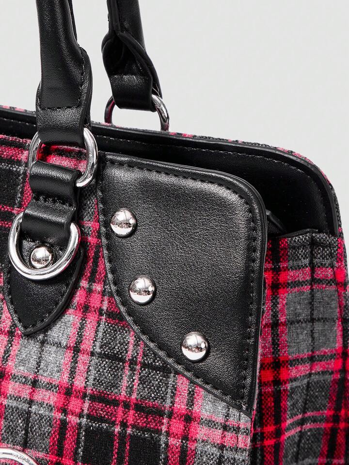 Grunge Punk حقيبة يد كبيرة السعة ذات طراز مربع منقوش للنساء