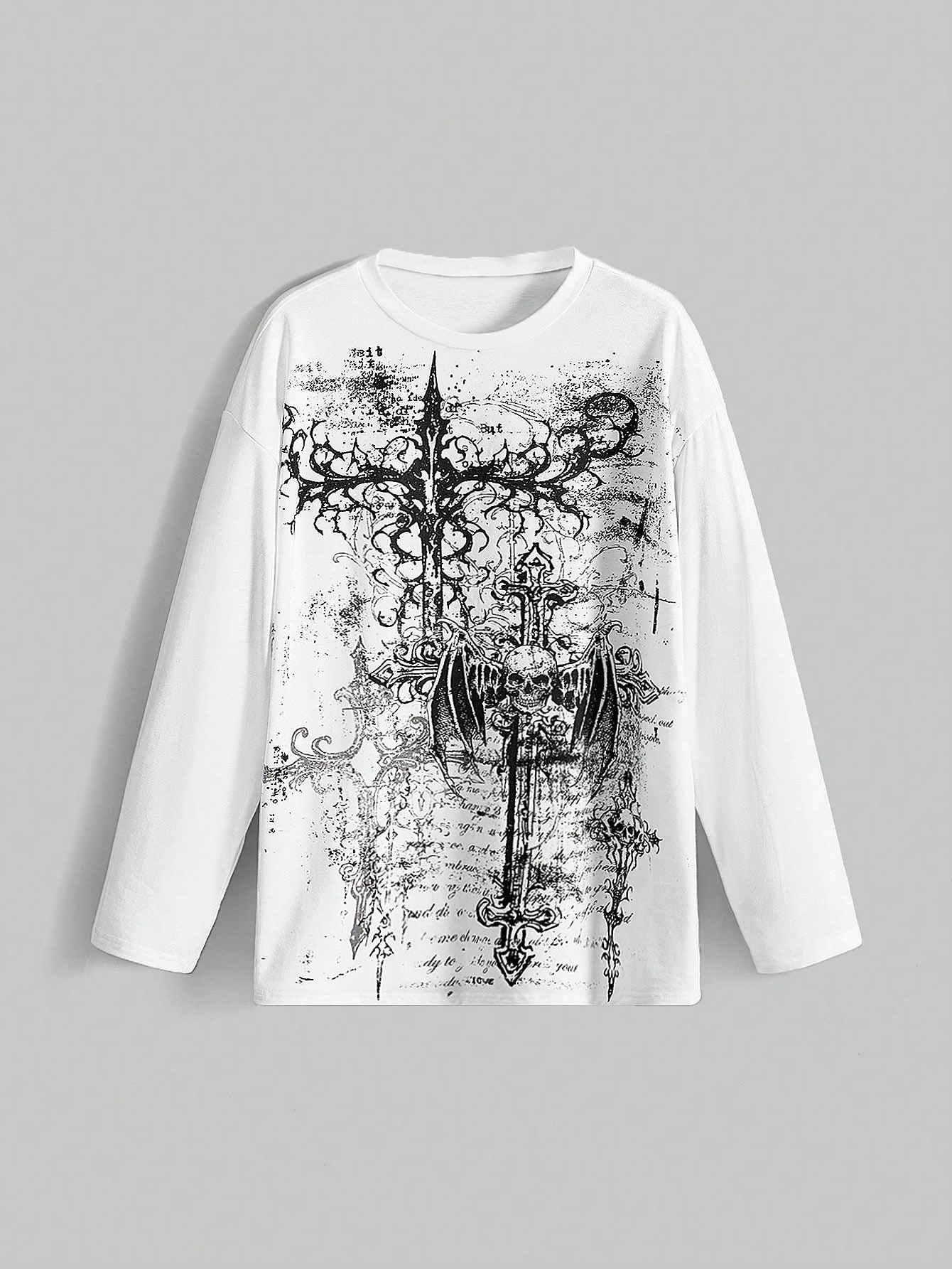Grunge Punk بلوزة بنطلون نسائية مطبوعة بصليب مشوه بطراز بانك