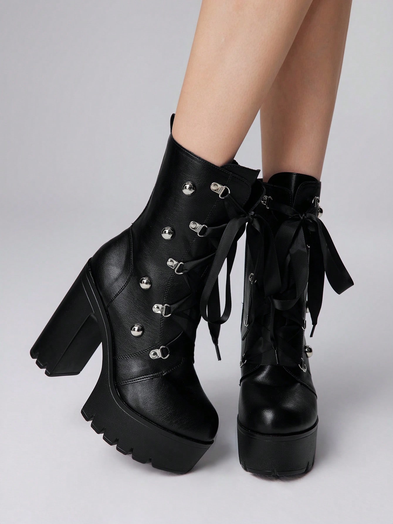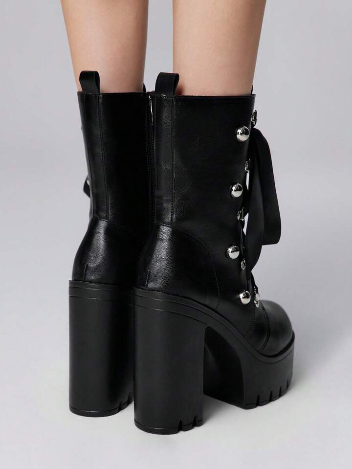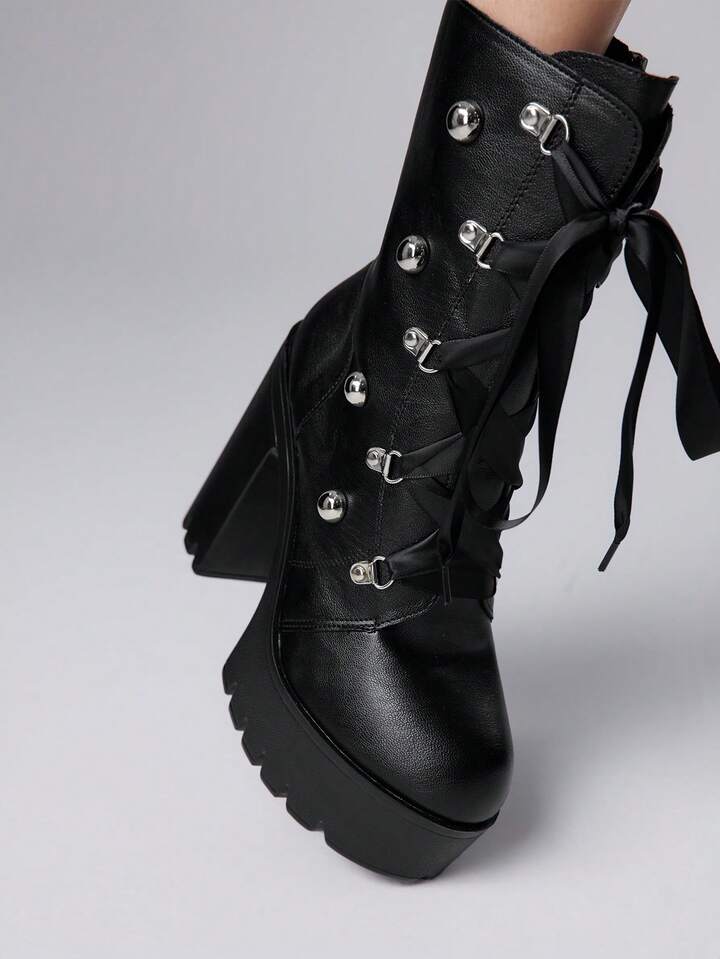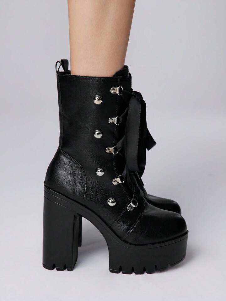 Grunge Punk بوت نسائية بنمط بانك ذات كعب سميك وطول متوسط الساق