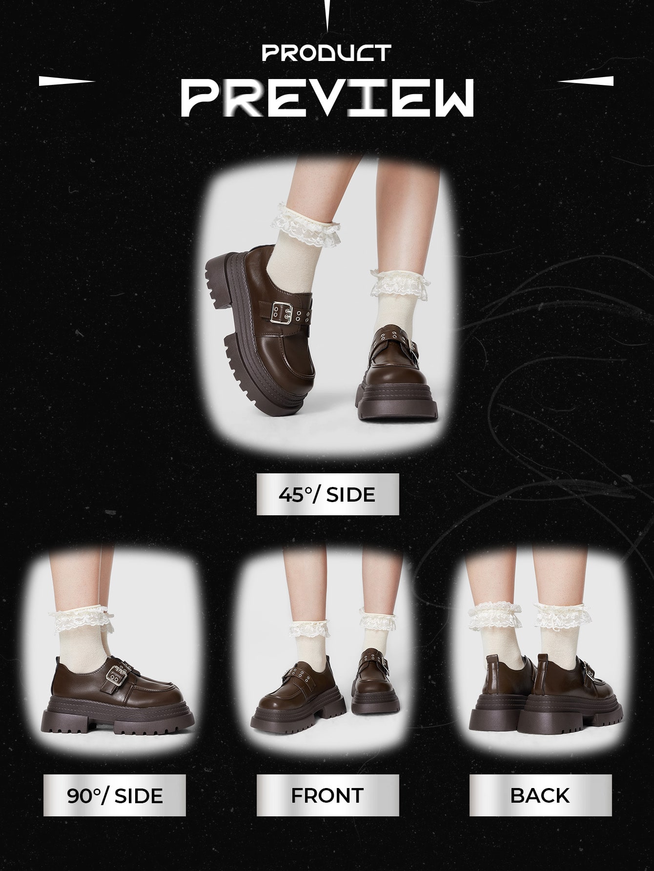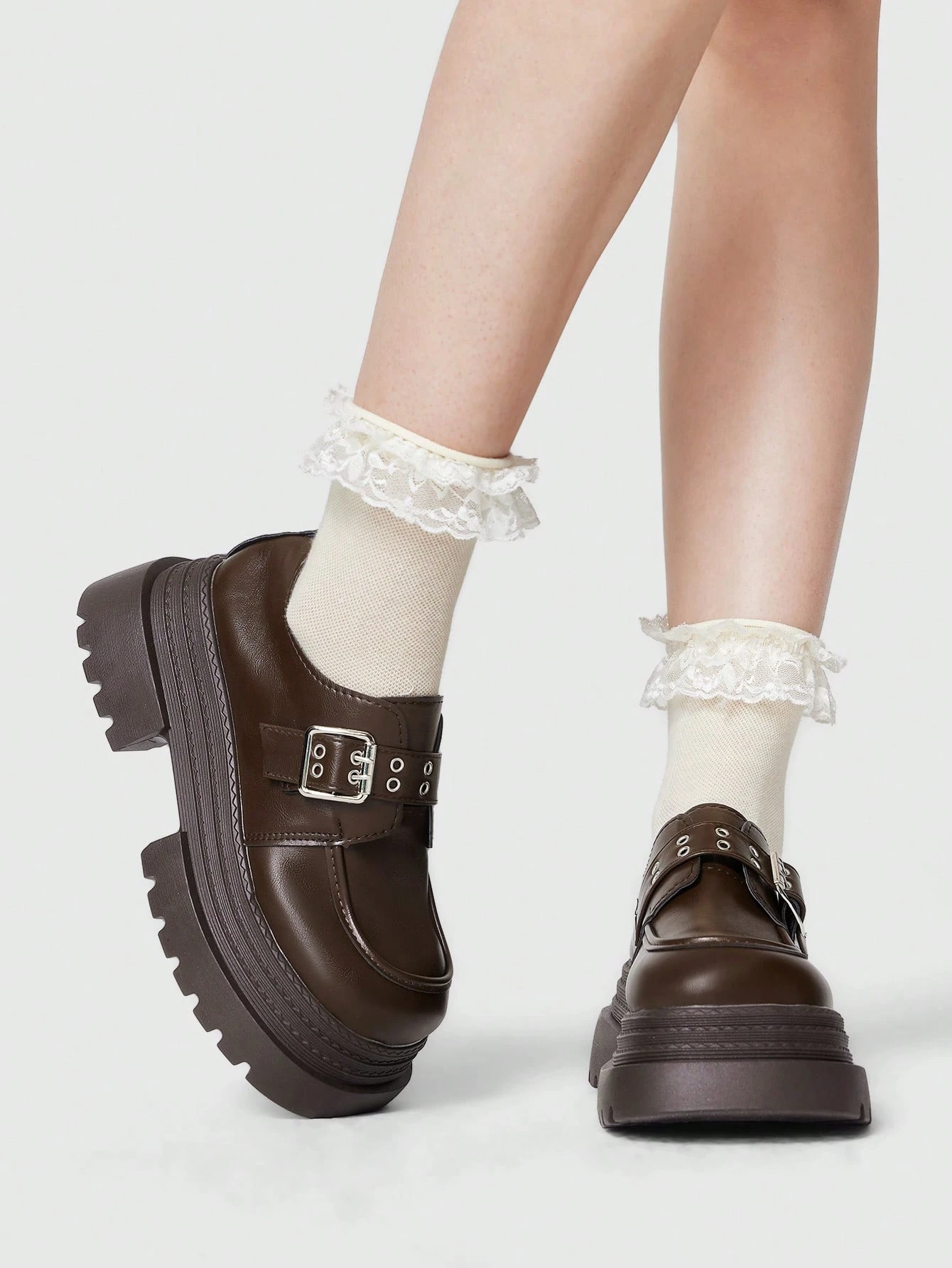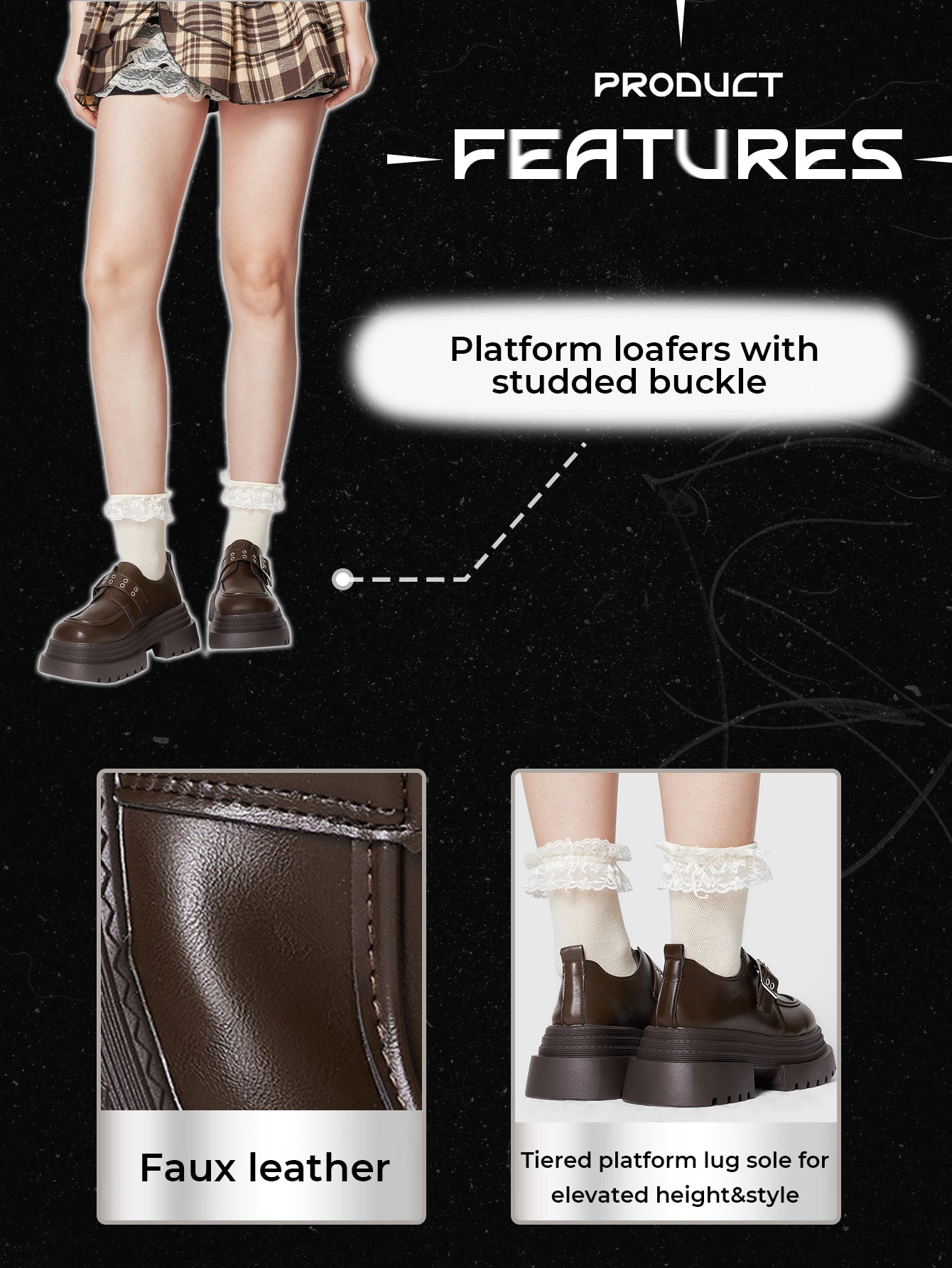 Grunge Punk أحذية كاجوال منصة ذات لون واحد مزينة بمعدن للنساء