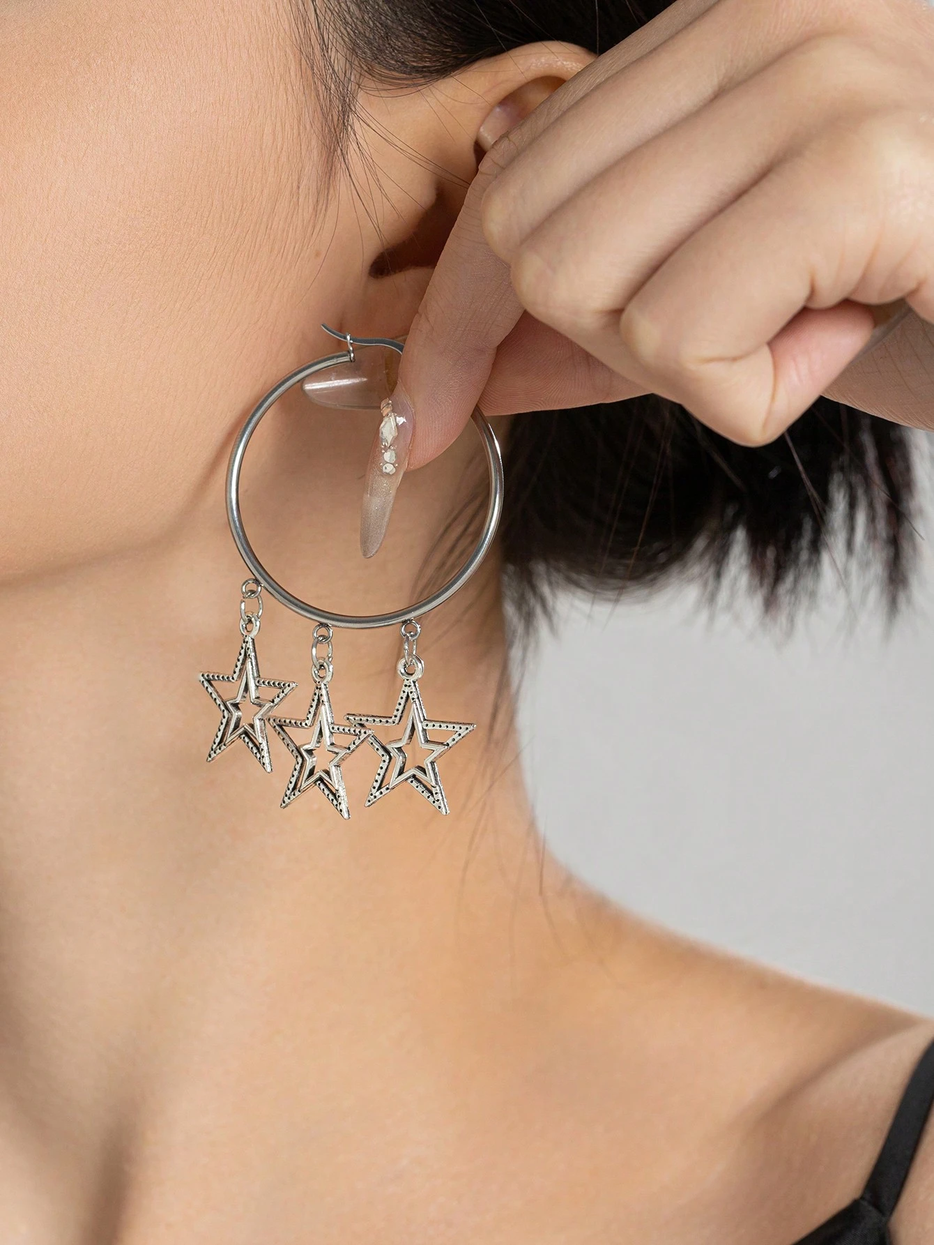 Grunge Punk أقراط حلقية نسائية بقلادة نجمة