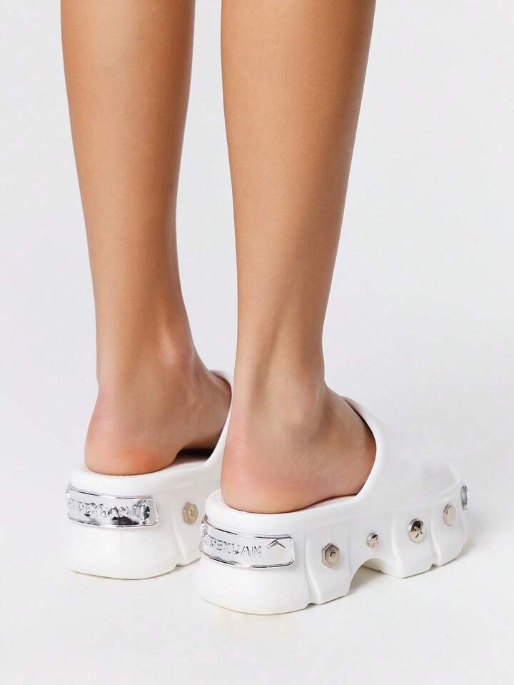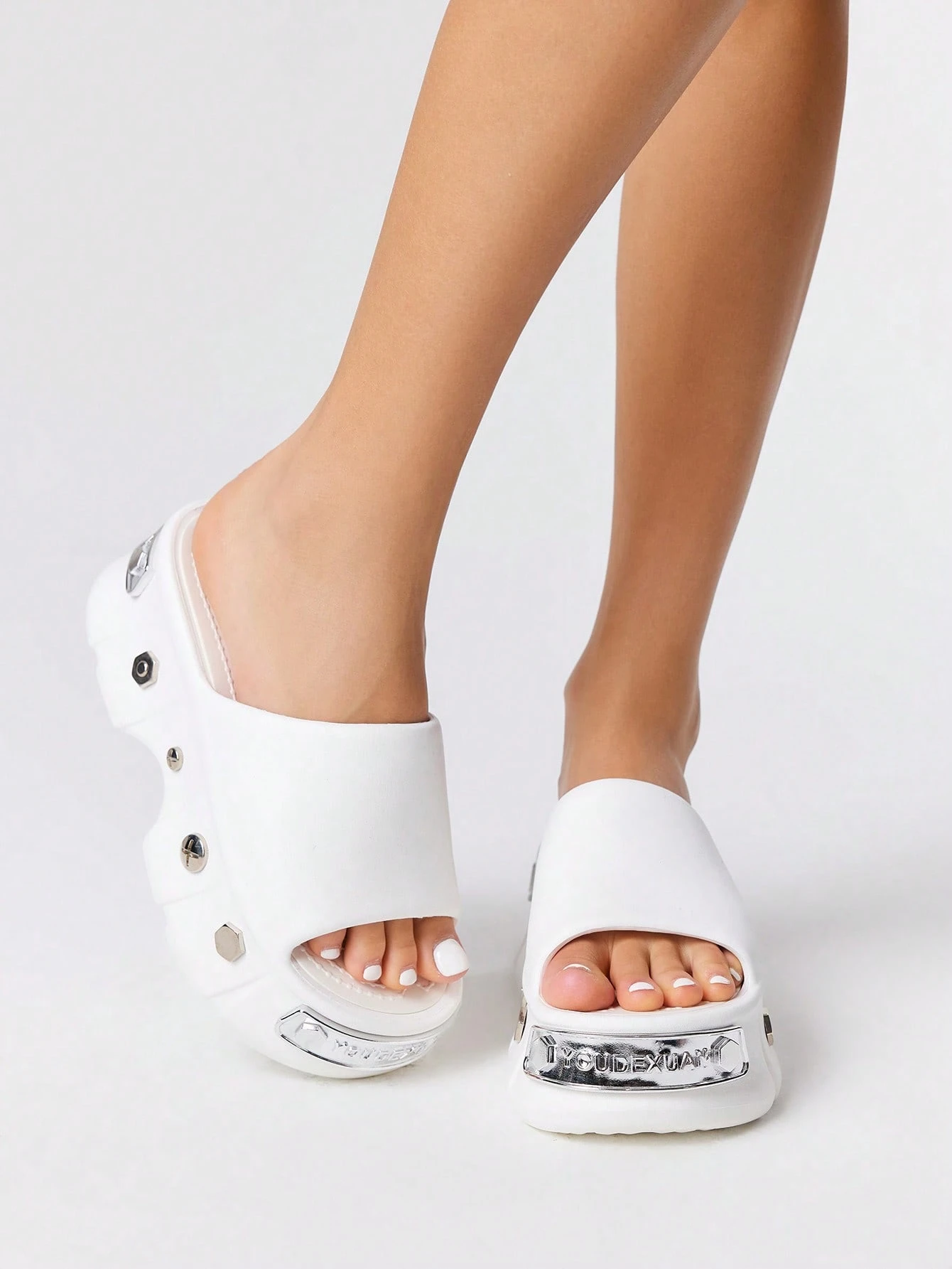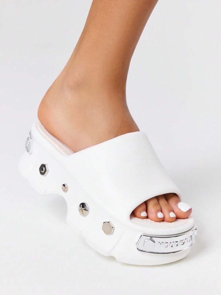 Grunge Punk صنادل نسائية بيضاء ذات إبزيم تعبر عن طراز البنك والغوث، صنادل شاطئية رومانية ذات فتحة للأصابع للصيف، صنادل إجازة ذات بلاتفورم