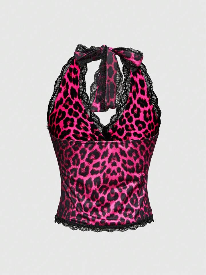 Grunge Punk سترة صيفية حلقية من الدانتيل برسم نمر للنساء، طراز Y2K