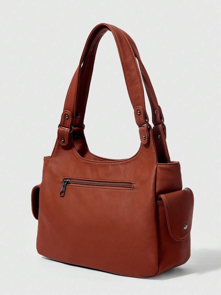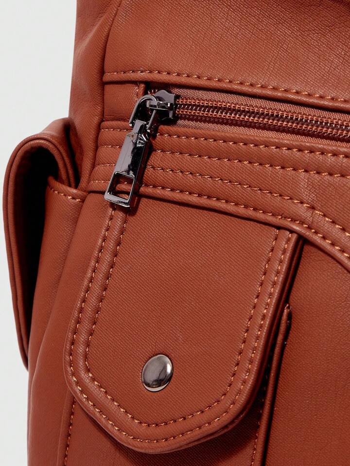 Grunge Punk حقيبة كتف نسائية باللون البني بتصميم سوستة وأسلوب الدراجة النارية