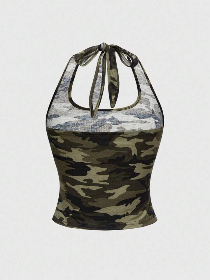 Grunge Punk خزامى مطبوع بطباعة أعلام الولايات المتحدة صيحة 2000 قطعة علوي محبوك برقبة حالكة للنساء