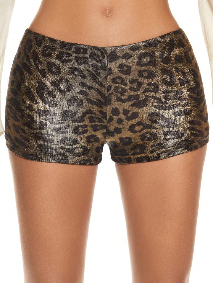 Grunge Punk سروال قصير نسائي ضيق منخفض الخصر مزين بطباعة نمر ورقائق ذهبية بطراز Gyaru Y2K جريء وجذاب