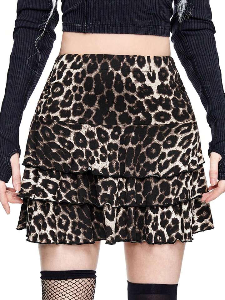 Grunge Punk تنورة بيبلوم متعددة الطبقات بخصر ملطخ بالطباعة النمري هاراجوكو للنساء طراز Y2K