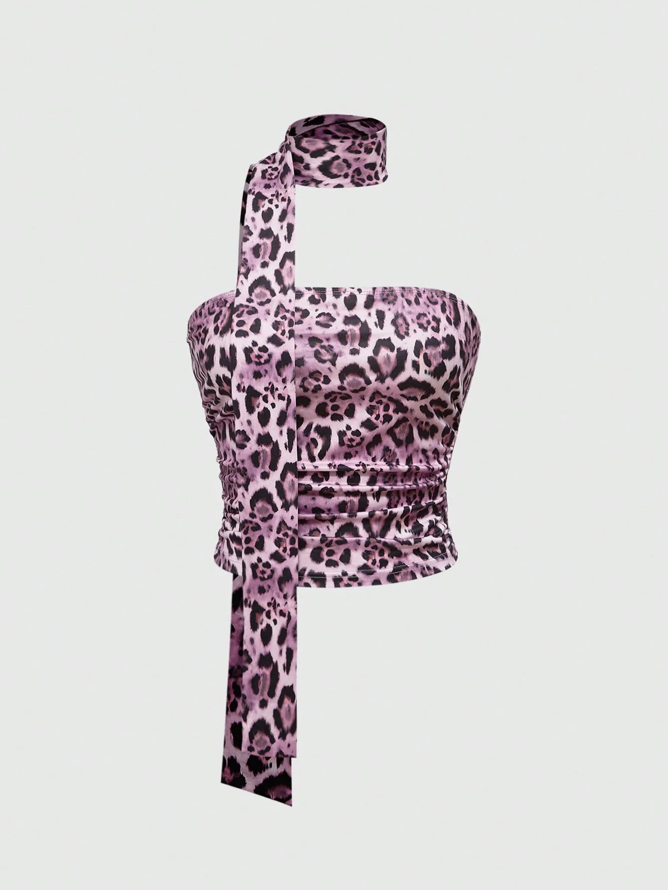 Grunge Punk توب نسائي مناسب ومطبوع بنقشة الفهد، ضيق وملتوي للظهر، مناسب لموضة عام 2000