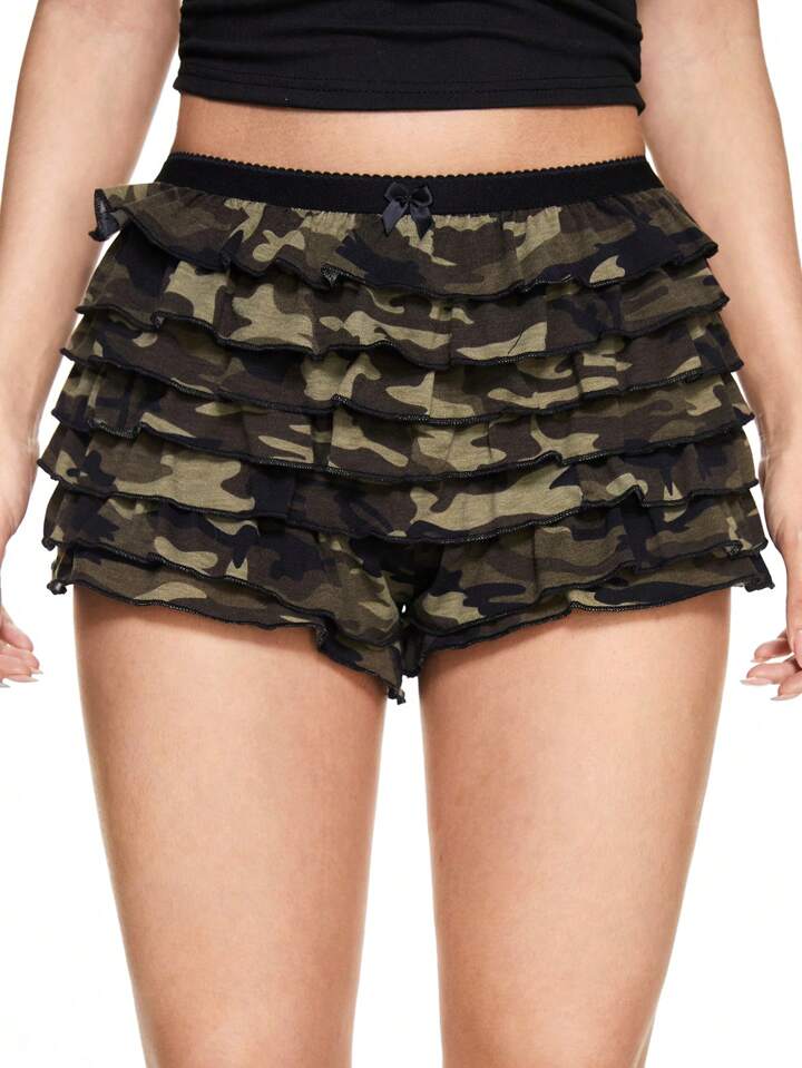 Grunge Punk صدرية قصيرة سامية الخصر ذات طبعة نمر كاملة مع حاشية التجعيد