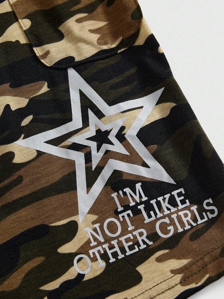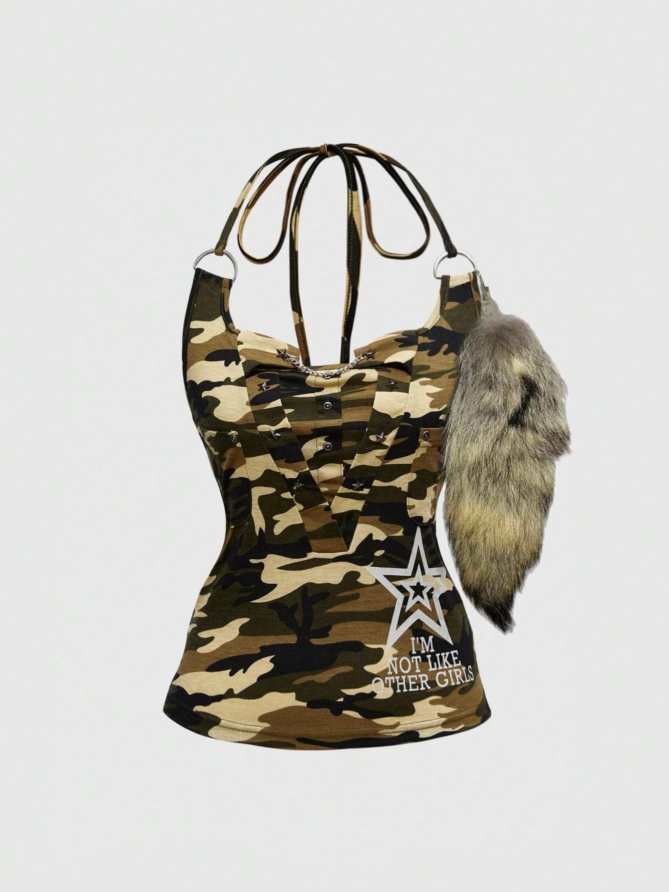 Grunge Punk لباس علوي نسائية بياقة الحلقة المجدولة مطبوعة بالنجوم والنقشات الإنجليزية، بطراز كاموفلاج ودبابيس، بطراز الستينات والسبعينات