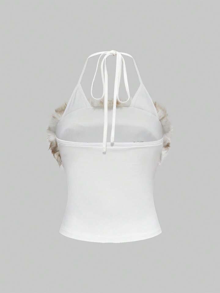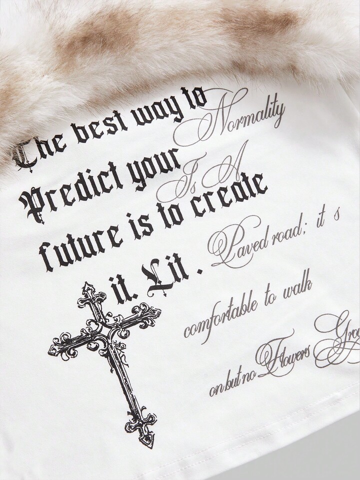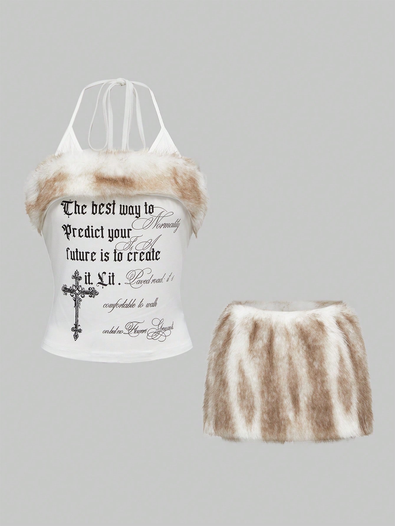 Grunge Punk مجموعة تنورة قصيرة ضيقة وهالتر فرو مطبوع بحرف عبر للنساء بطراز Y2K الرجعي الجذاب