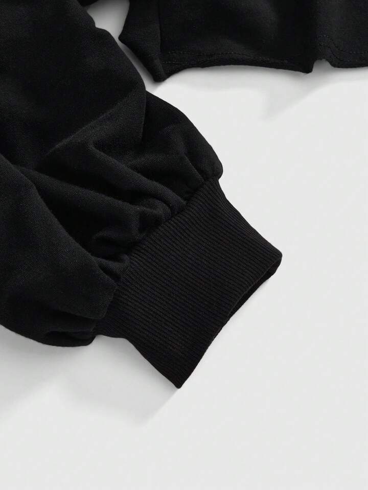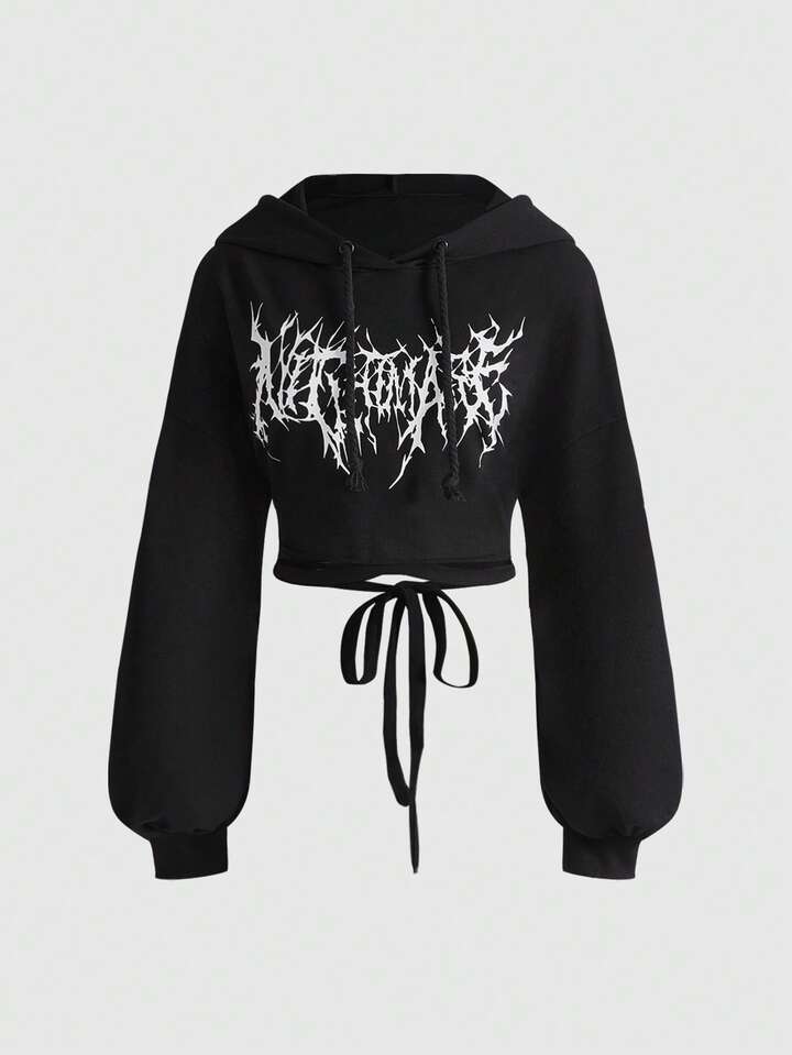 Grunge Punk هودي قصير ظهر مكشوف مطبوع بطباعة البرق والنص الإنجليزي "Y2K Sexy Babe" للنساء