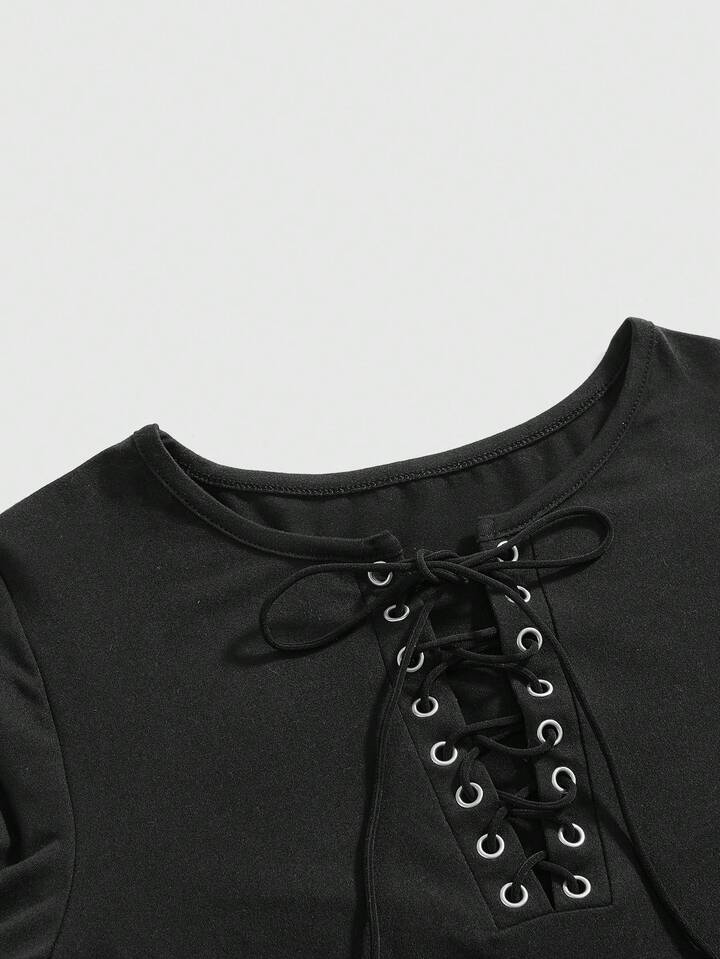 Grunge Punk قميص نسائي مطابق مزين بالدانتيل على الأربطة بطراز Y2K