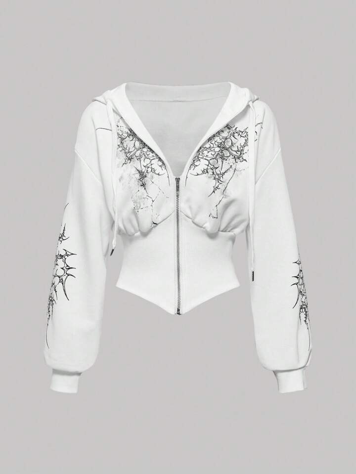 Grunge Punk هودي بياقة فرو مطبوع بنمط النمر مناسب للنساء، من ثقافة الفرعية Y2K الرجعية