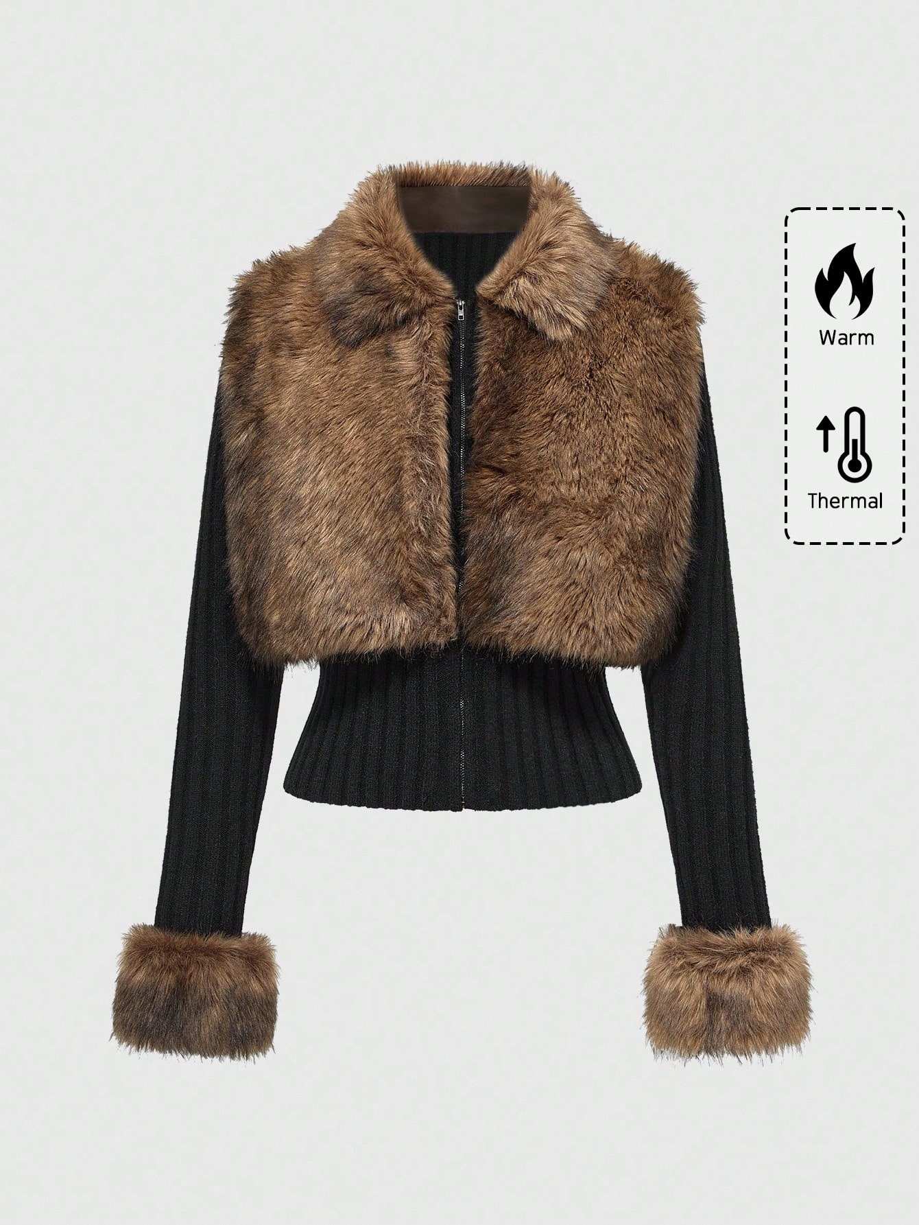Grunge Punk جاكيت مبطنة بفرو اصطناعي بتصميم رجعي من عصر الألفية الجديدة