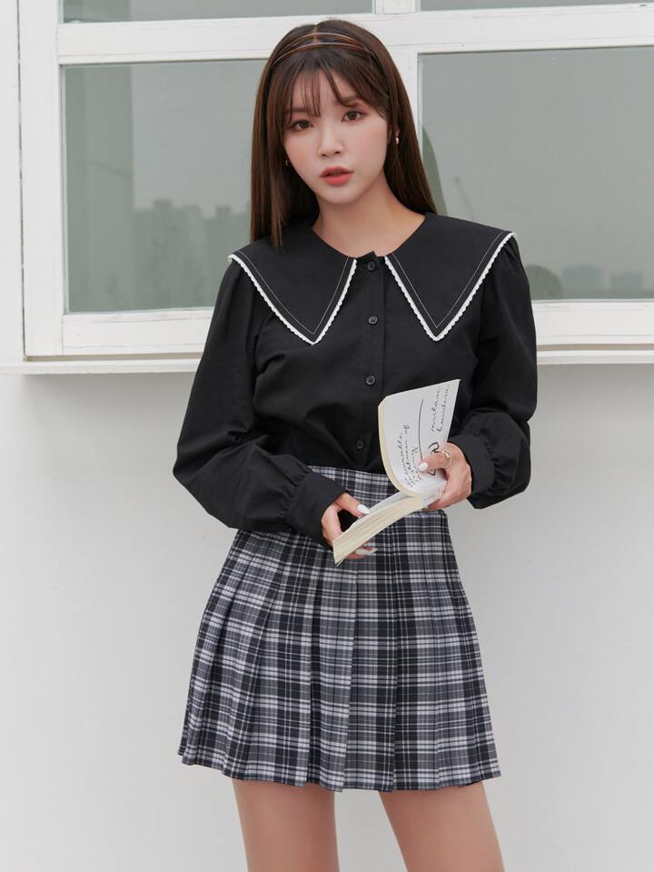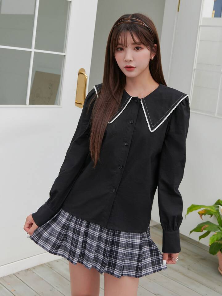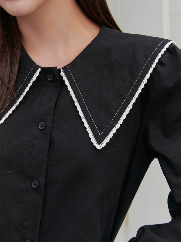 بلايز دانتيل ثقيل من زخارف مطرزة تفاصيل ياقة البحار