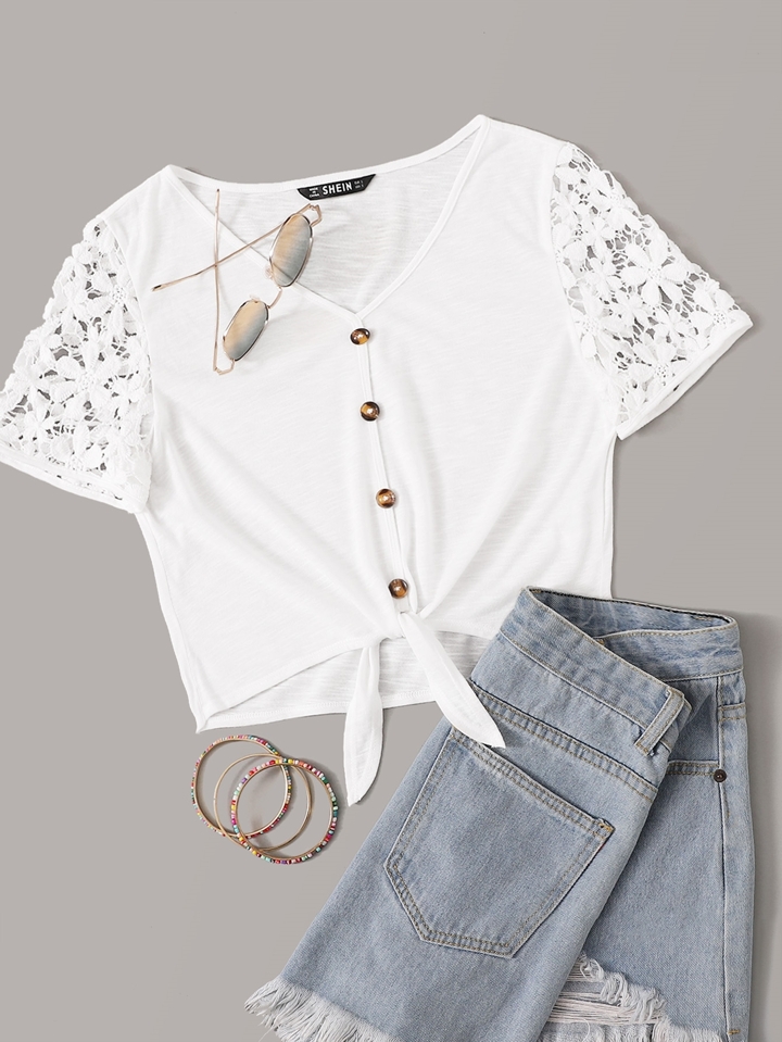 ثوب بالتخريم الحشني وحافة العقدة بالأزرار الأمامية