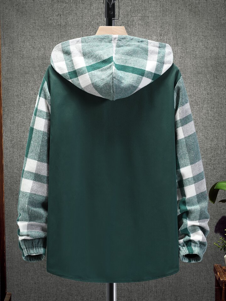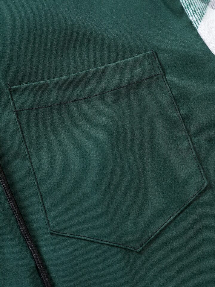 معطف مربعات ملونة مرقع جيب رباط قبعة قطعة واحدة للرجال