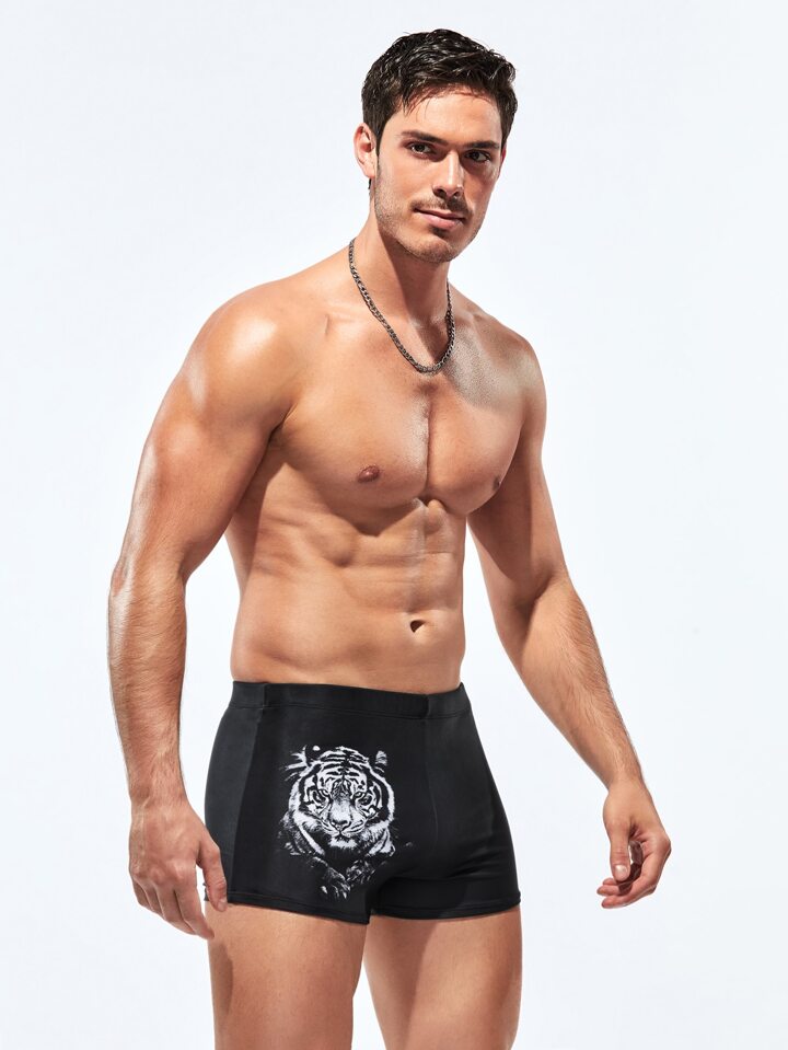 شورت سباحة ترانك طباعة النمر 3D ساق مربعة للرجال