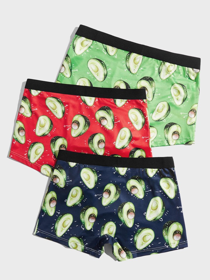 سروال داخلي بوكسر طباعة الأفوكادو 3 قطع للرجال