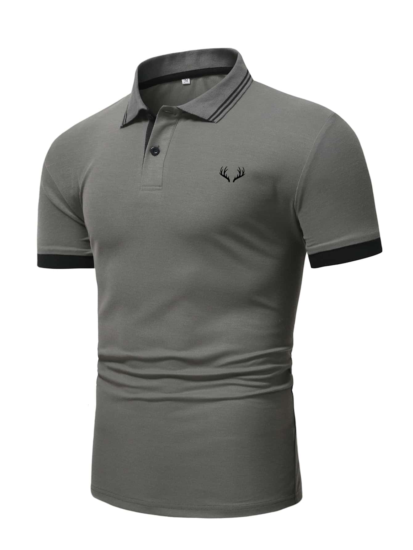 قميص بولو بطباعة قرن الوعل مقلم مخطط للرجال