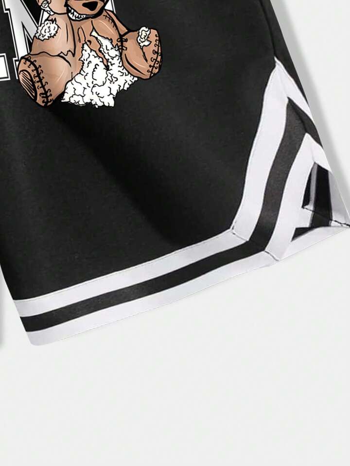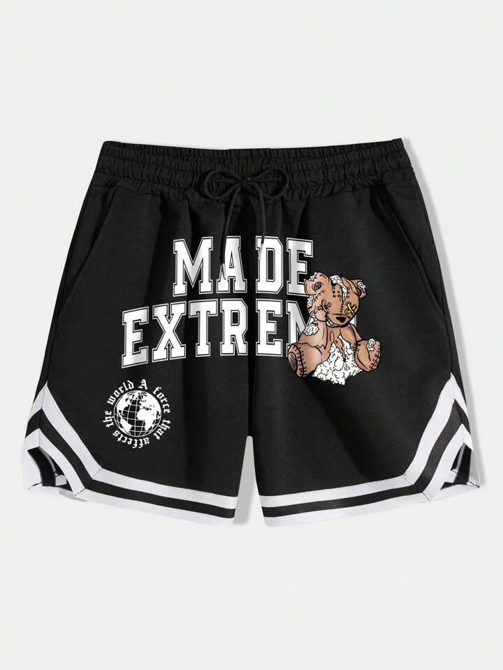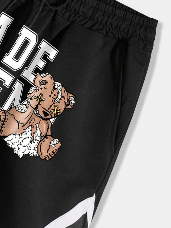 بنطلون قصير بجرافيك عبارة ودب رباط خصر للشباب